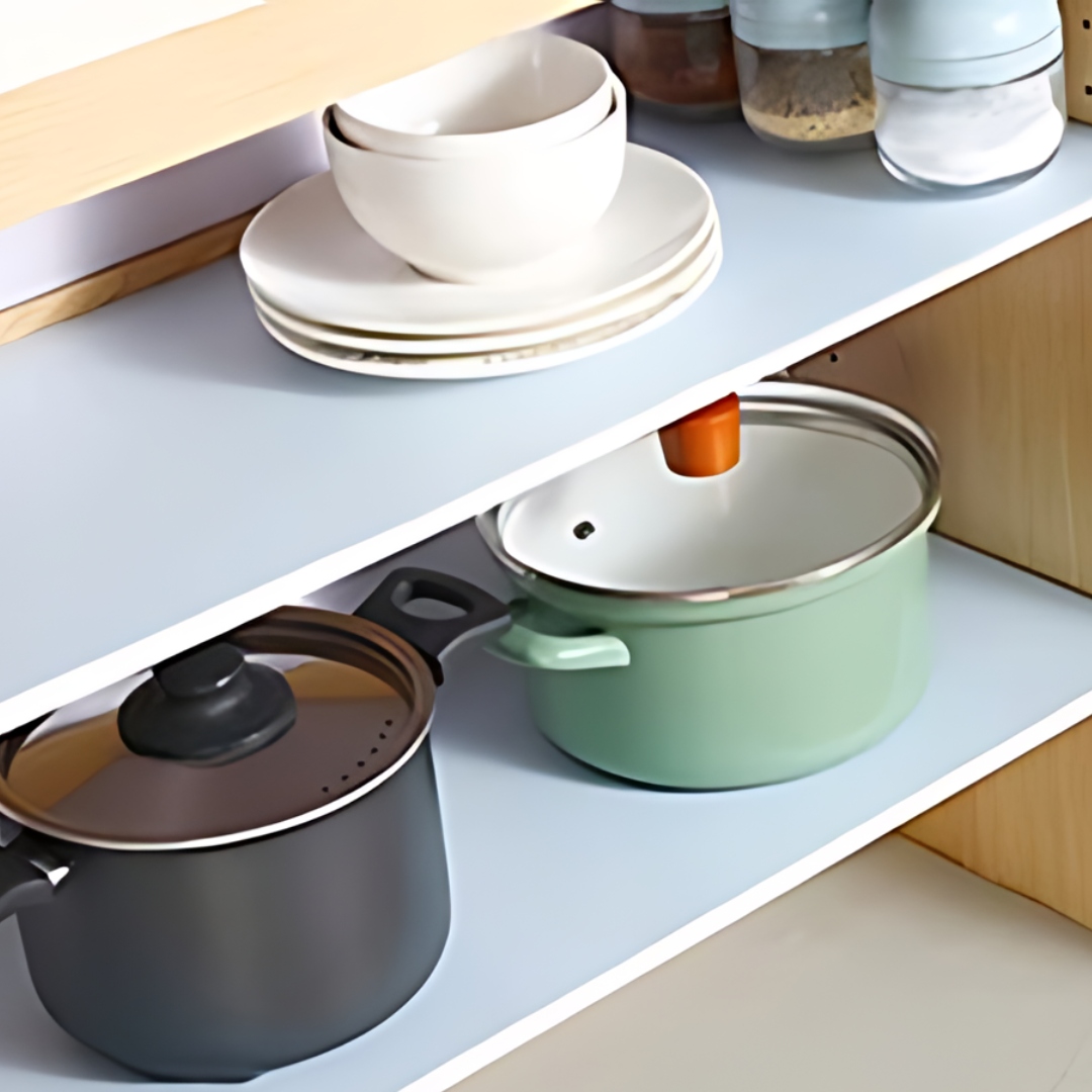 ✅ Виріжте пластиковий килимок, щоб він відповідав інтер'єру шаф і ящиків на вашій кухні. Це практичне рішення, яке полегшує збереження чистоти. Ножиць достатньо, щоб ідеально адаптувати його до ваших потреб.