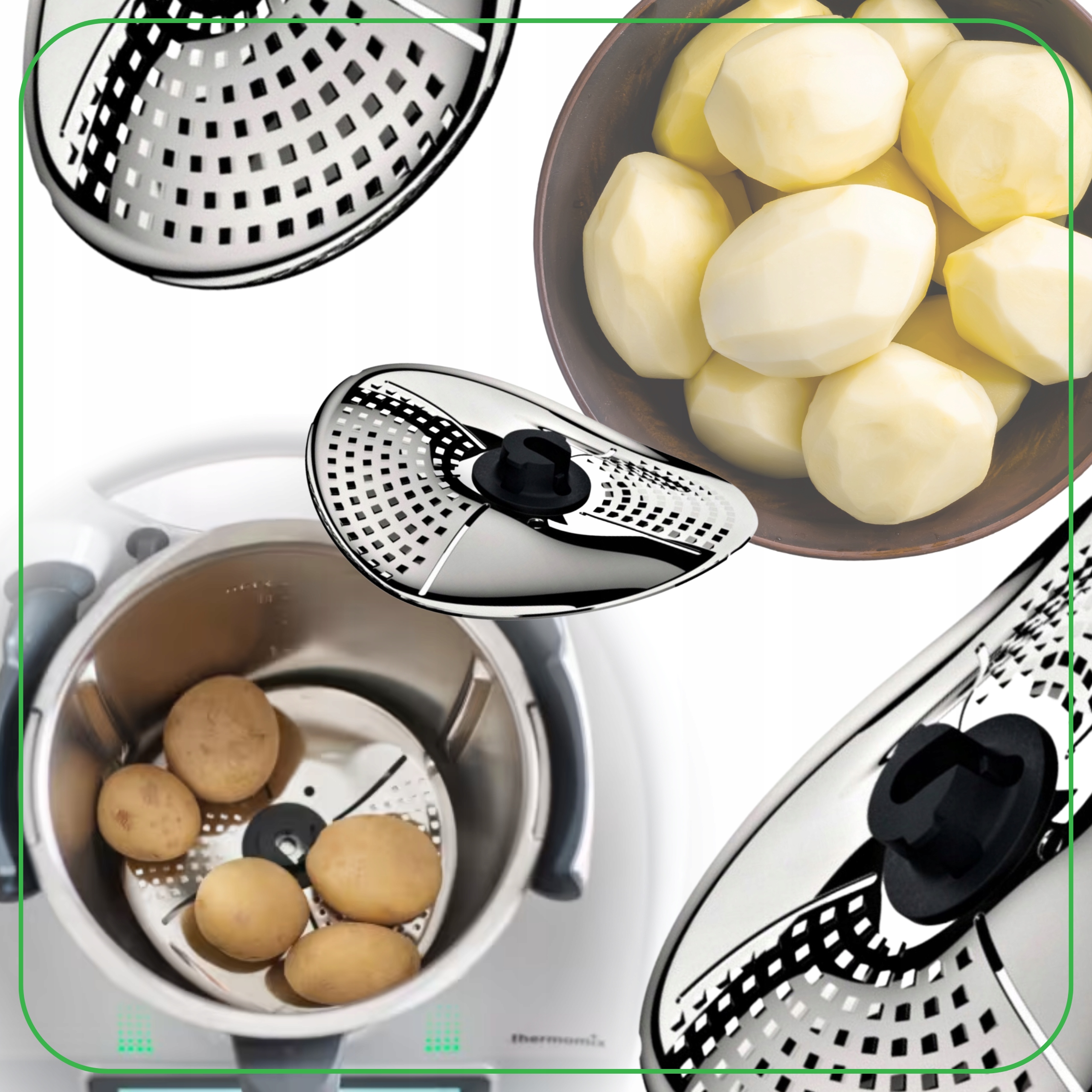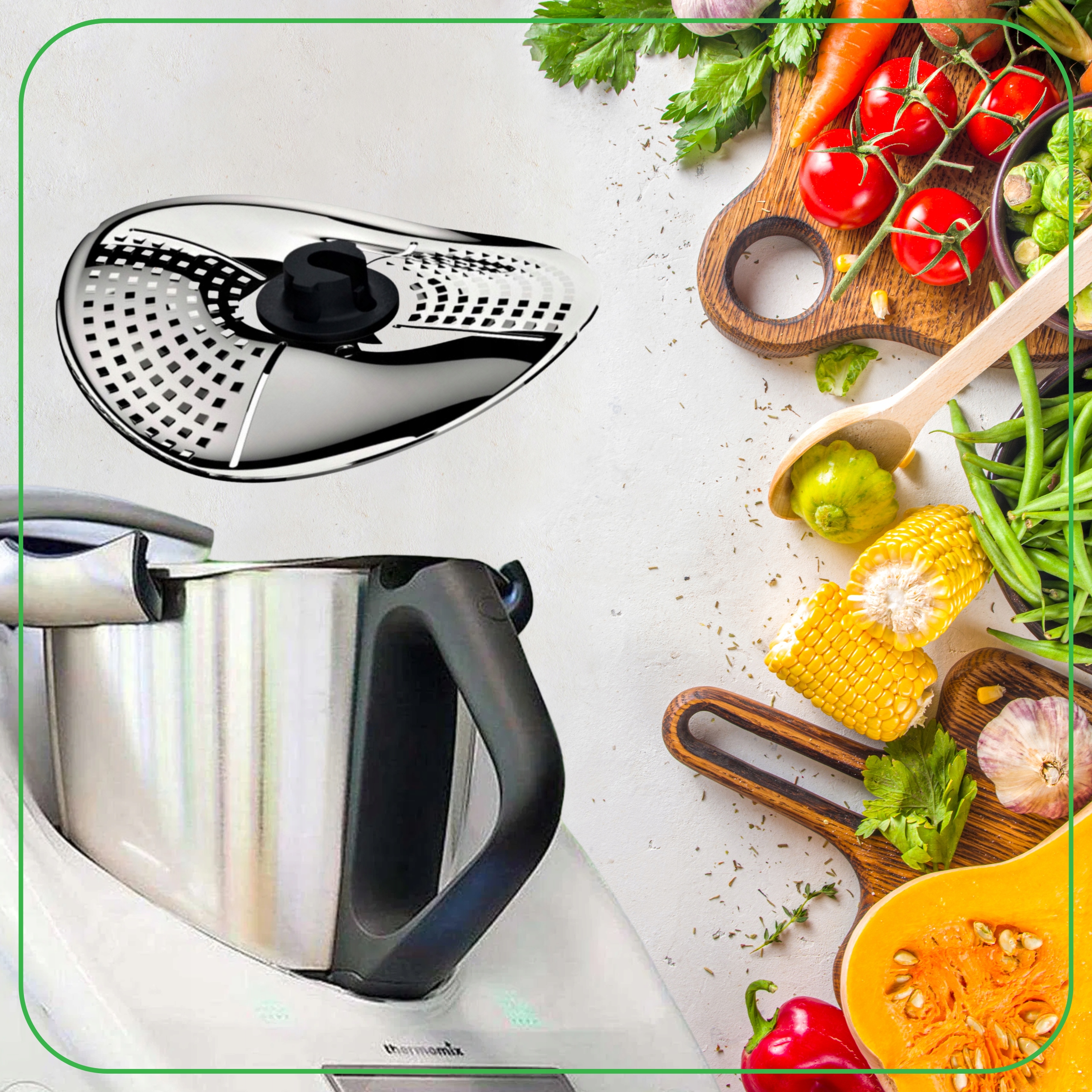 Металевий чохол для ножів Thermomix TM5, TM6, TM31 і TM Friend — це інноваційний аксесуар, який революціонізує вашу кулінарію. Завдяки унікальнійфункції очищення овочів і захисту ножа від прямого контакту інгредієнтів із ножем для змішування кришка забезпечує універсальність на кухні.