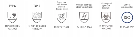 EN 13034:2005+A1:2009 - Тип 6 - Захисний одяг від рідких хімікатів - бризки під низьким тиском.