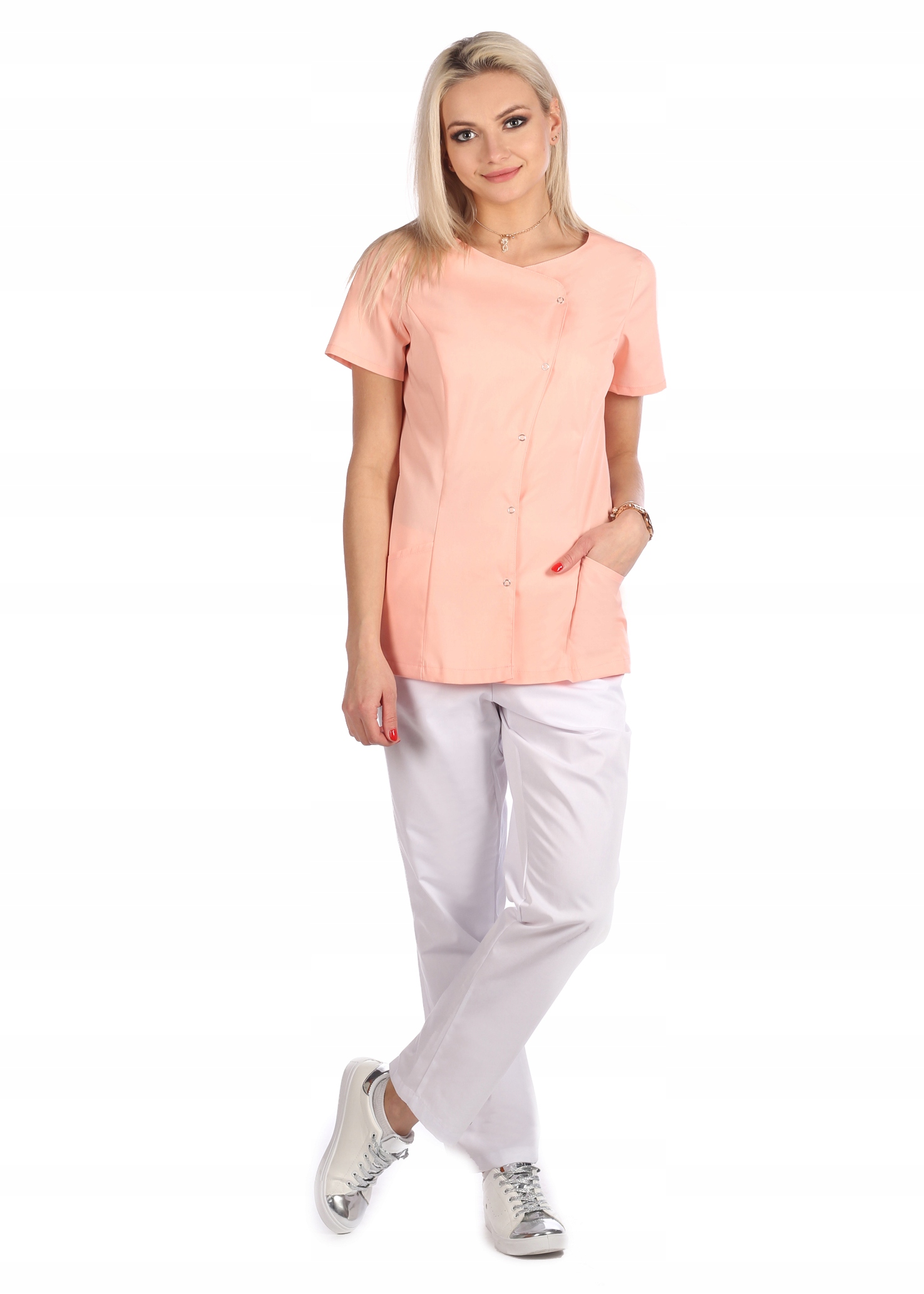 Медична або косметична куртка у найкращому випуску у поєднанні з вузькими штанами. Scheaffee Faideners, що дозволяє два варіанти декольте. Французькі порізи, моделюючи жіночу фігуру. Дві кишені (тут ми пропонуємо розміщувати логотип або уособлення компанії від Flock -для цієї мети необхідно звернутися до виробника.