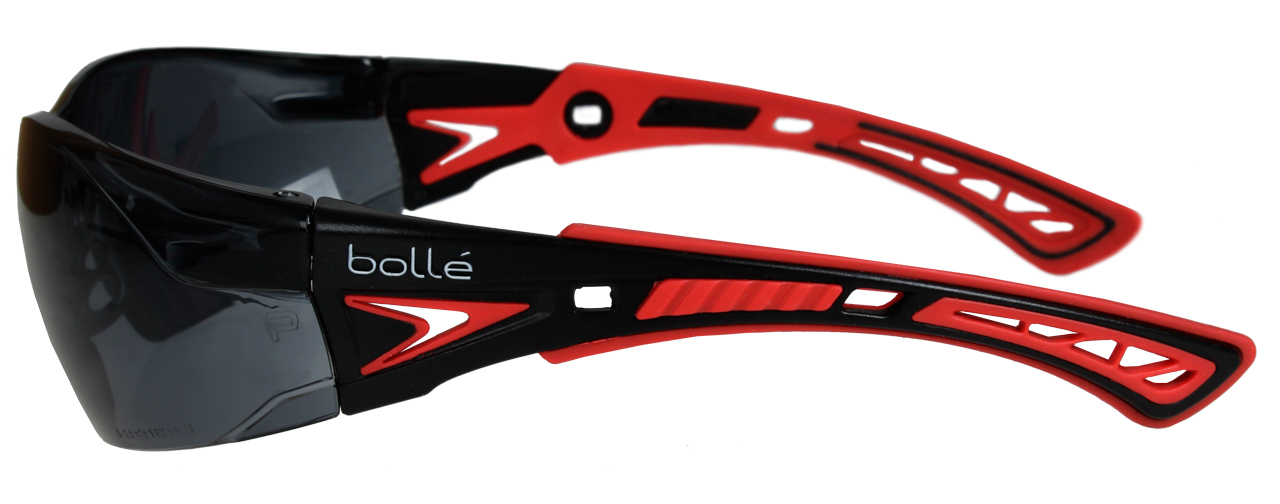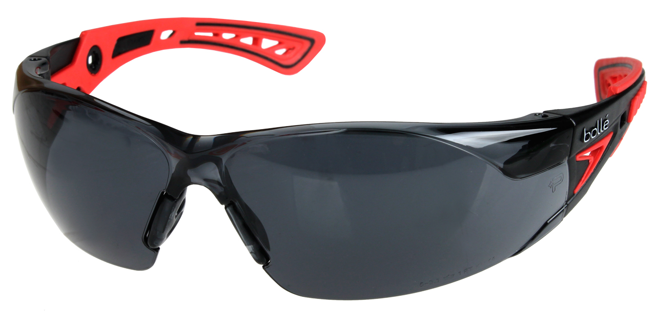Легкі сонцезахисні окуляри Bolle Rush Safety Smoke PC з механічною міцністю лінз, що дозволяє захистити ваші очі від осколків, рикошетів та інших предметів, що потрапляють всередину. клас F (об'єкт масою 0,86 г, що рухається зі швидкістю 45 м/с) і T (розжарені частинки).
