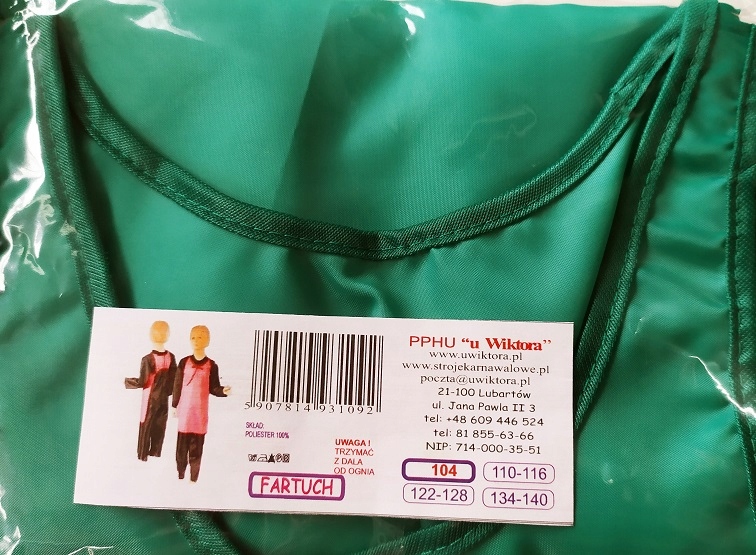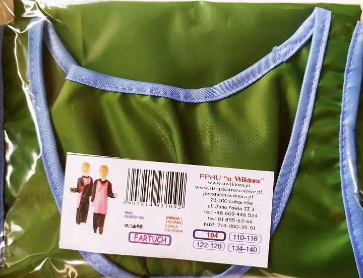 Просматривая «Захисний пластиковий фартух фарбування поліамід 104», вы можете быть уверены, что данный товар из каталога «Передники защитные для детей» будет доставлен из Польши и проверен на целостность. В цене товара, указанной на сайте, учтена доставка из Польши. Внимание!!! Товары для Евросоюза, согласно законодательству стран Евросоюза, могут отличаться упаковкой или наполнением.