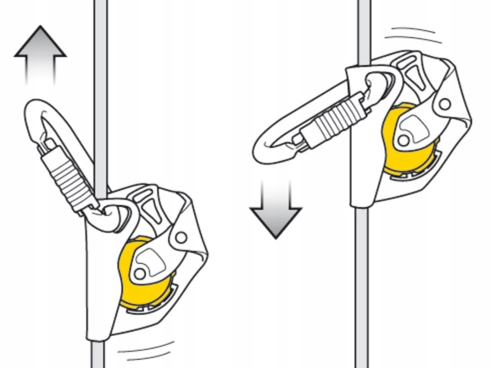 - автоматично рухається вгору та вниз по страхувальній мотузці,