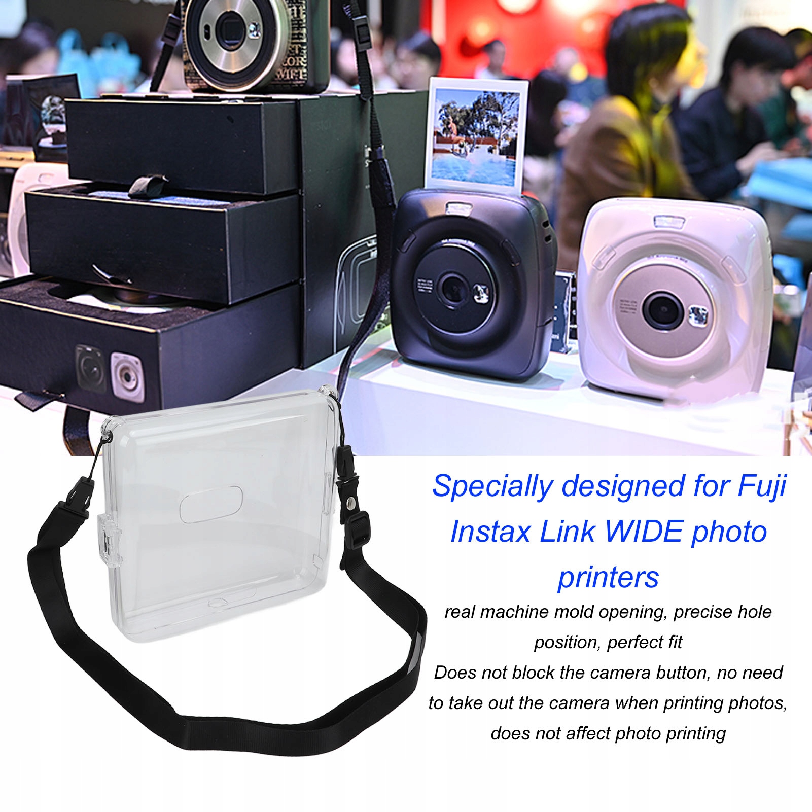 1. Відповідна модель: Кристалічний захисний чохол спеціально розроблений для фотопринтерів Fuji Instax Link WIDE, забезпечує справжнє відкриття прес-форми машини, точне розташування отвору, ідеальну посадку.