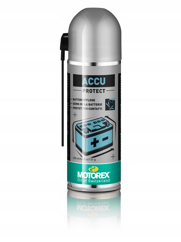 Застосування: MOTOREX ACCU PROTECT SPRAY захищає клеми акумулятора, полюсні затискачі, з’єднувачі, з’єднувальні кабелі та з’єднувальні кабелі.