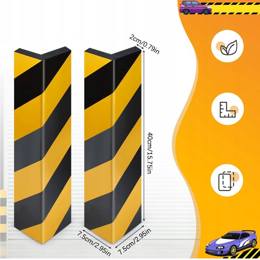 - 🚓 Кутові протектори з пінопласту достатньо товсті, щоб ефективно поглинати удари та захищати двері автомобіля та стіни гаража від подряпин і вм’ятин.