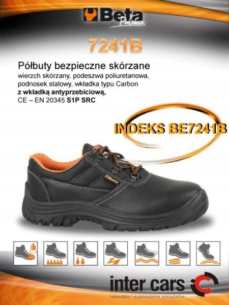 Взуття робоче BETA BASIC, розмір: 43, категорія безпеки: S1P, SRC, матеріал: шкіра, колір: чорний, носок: сталь