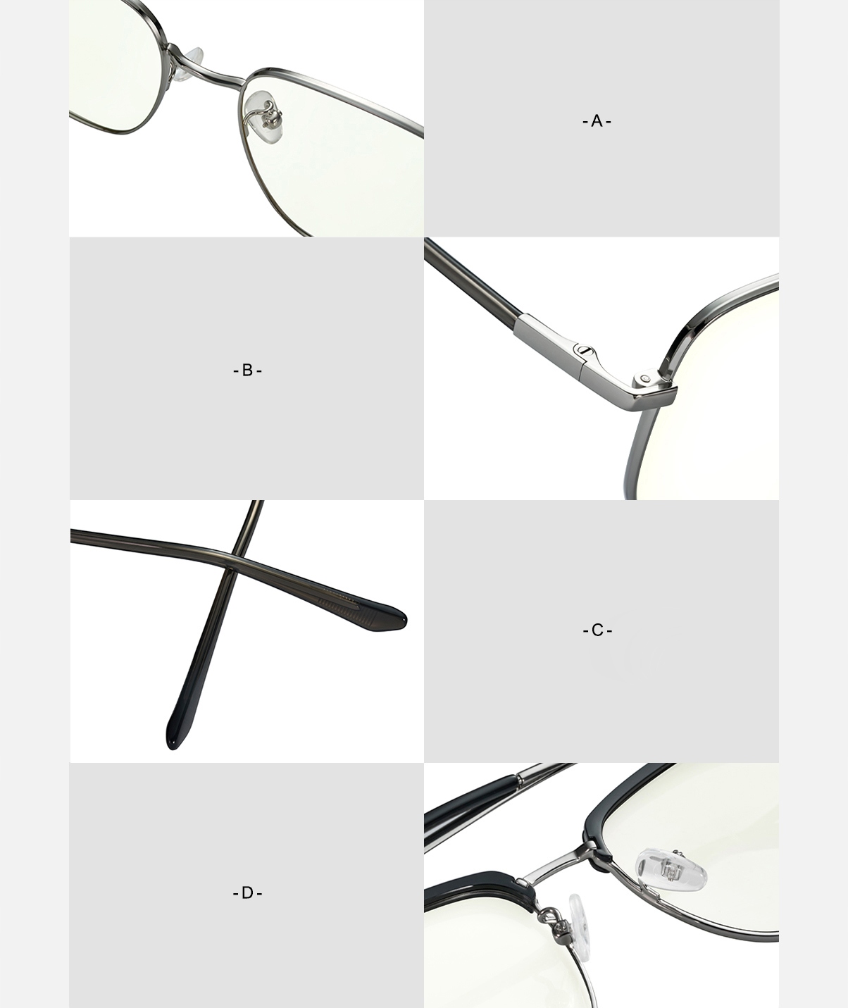 Дзеркальна нога виготовлена з титанового сплаву, хорошої сили, корозійної стійкості, надпрацювання та зручного для носіння, зменшуючи тиск на вуха та ніс.
