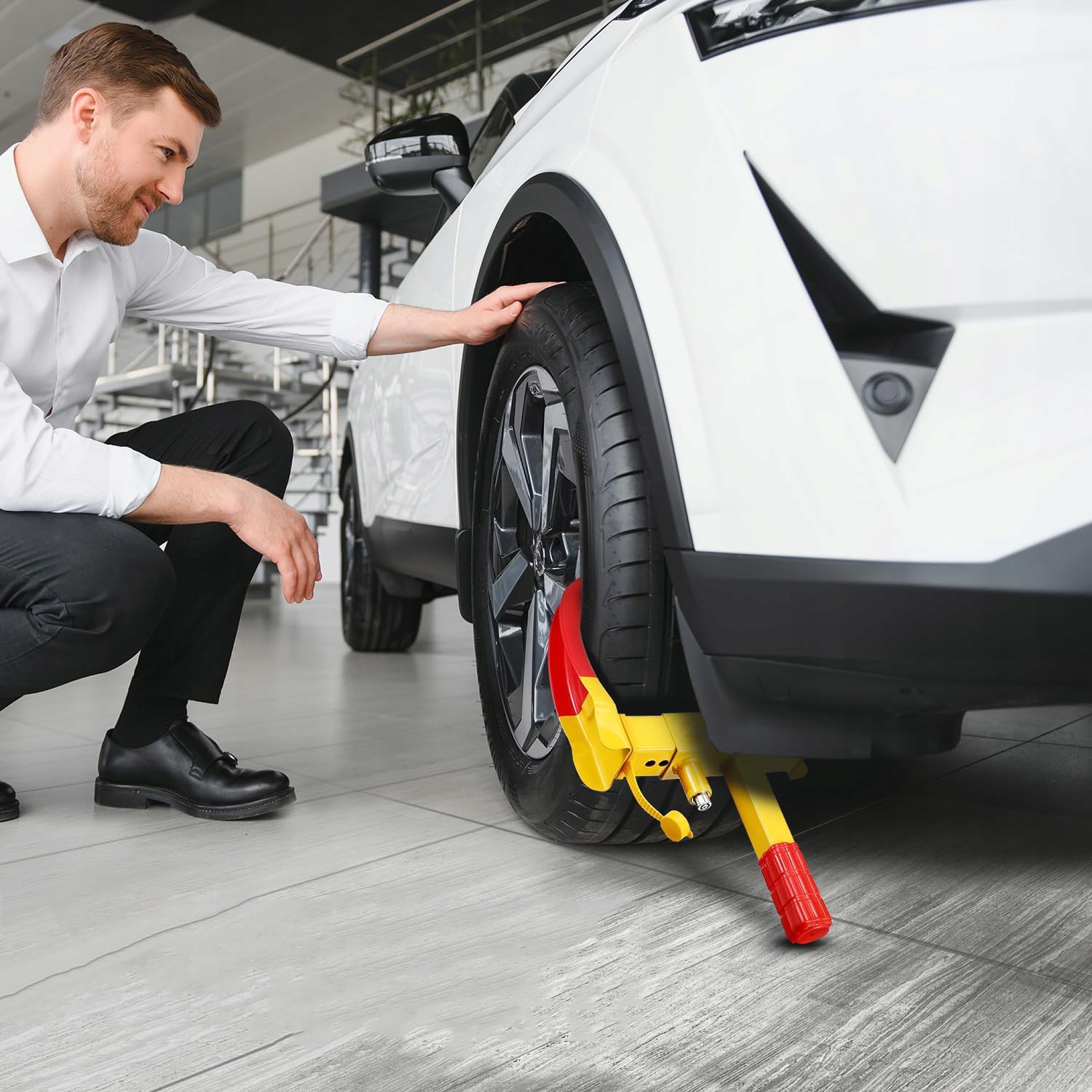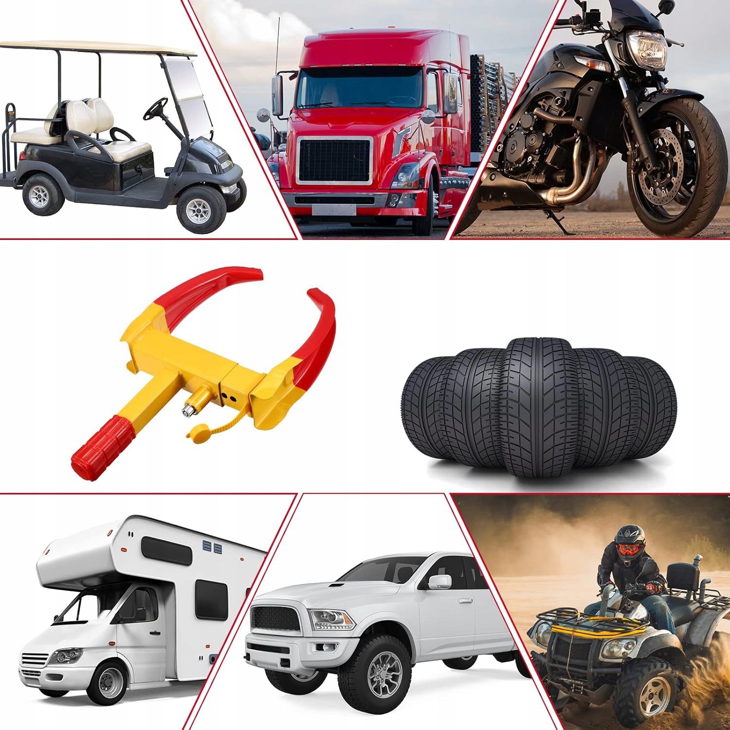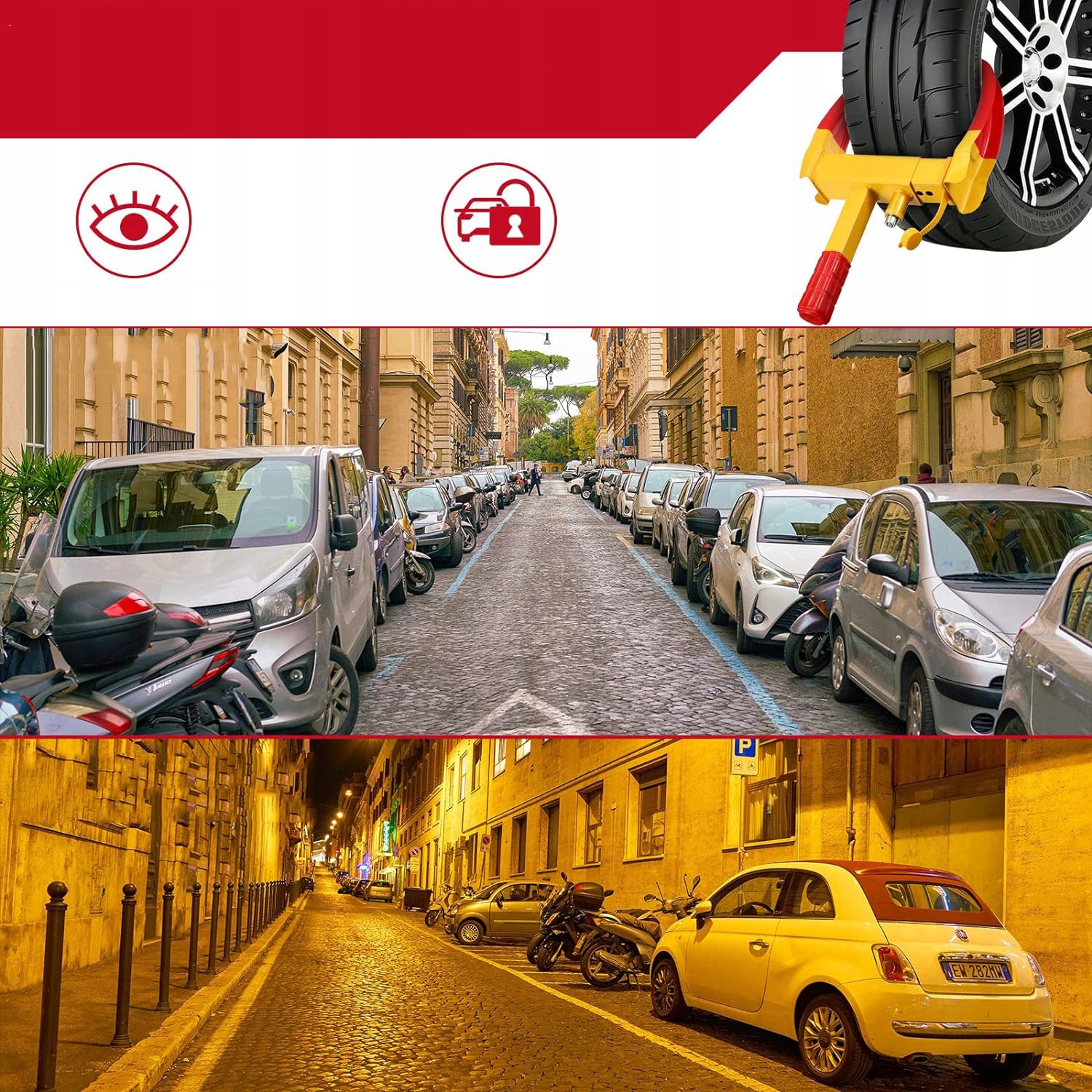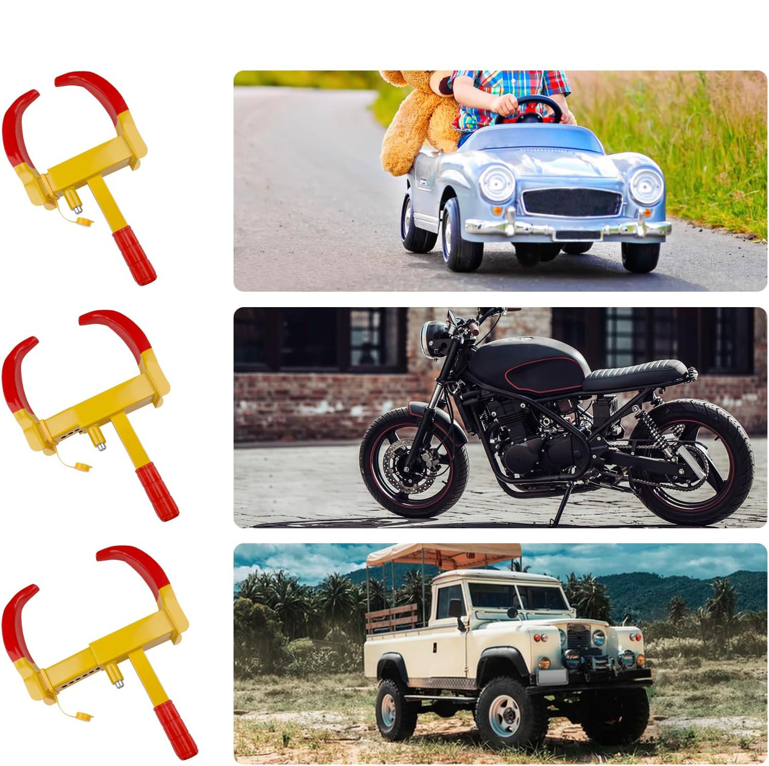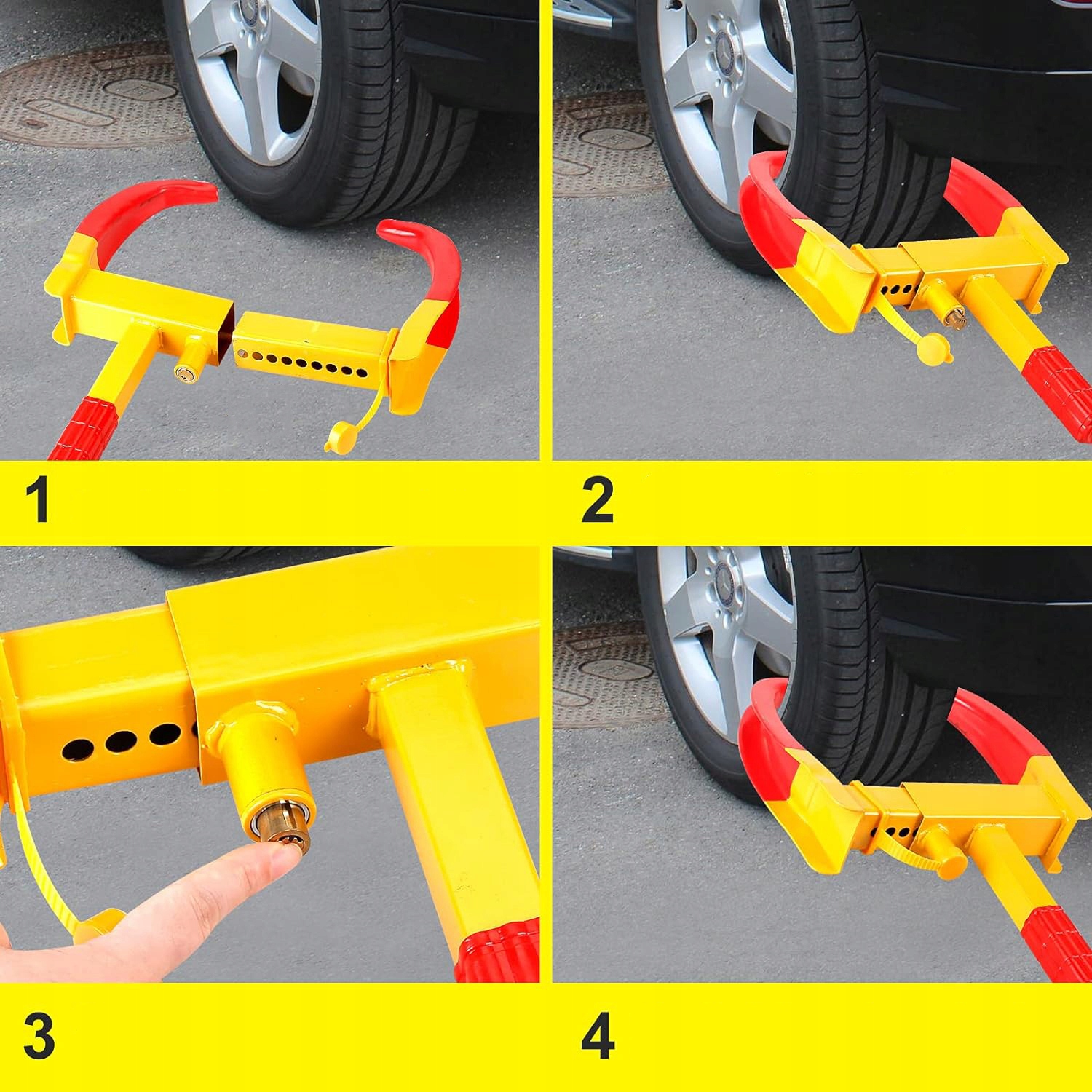 , жовтого та червоного кольору цього захисного замку в очах цього захисного замка призначені для того, щоб відлякувати злодіїв. Після закріплення обраного транспортного засобу завдяки замку колеса ви можете використовувати кріплення для захисту замка від вологи і, таким чином, запобігти корозії.