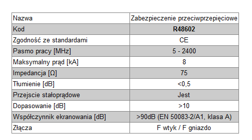 Пристрій працює з усім спектром ефірного та супутникового телебачення. Максимальний струм, від якого можна захистити обладнання, становить 8000 А.
