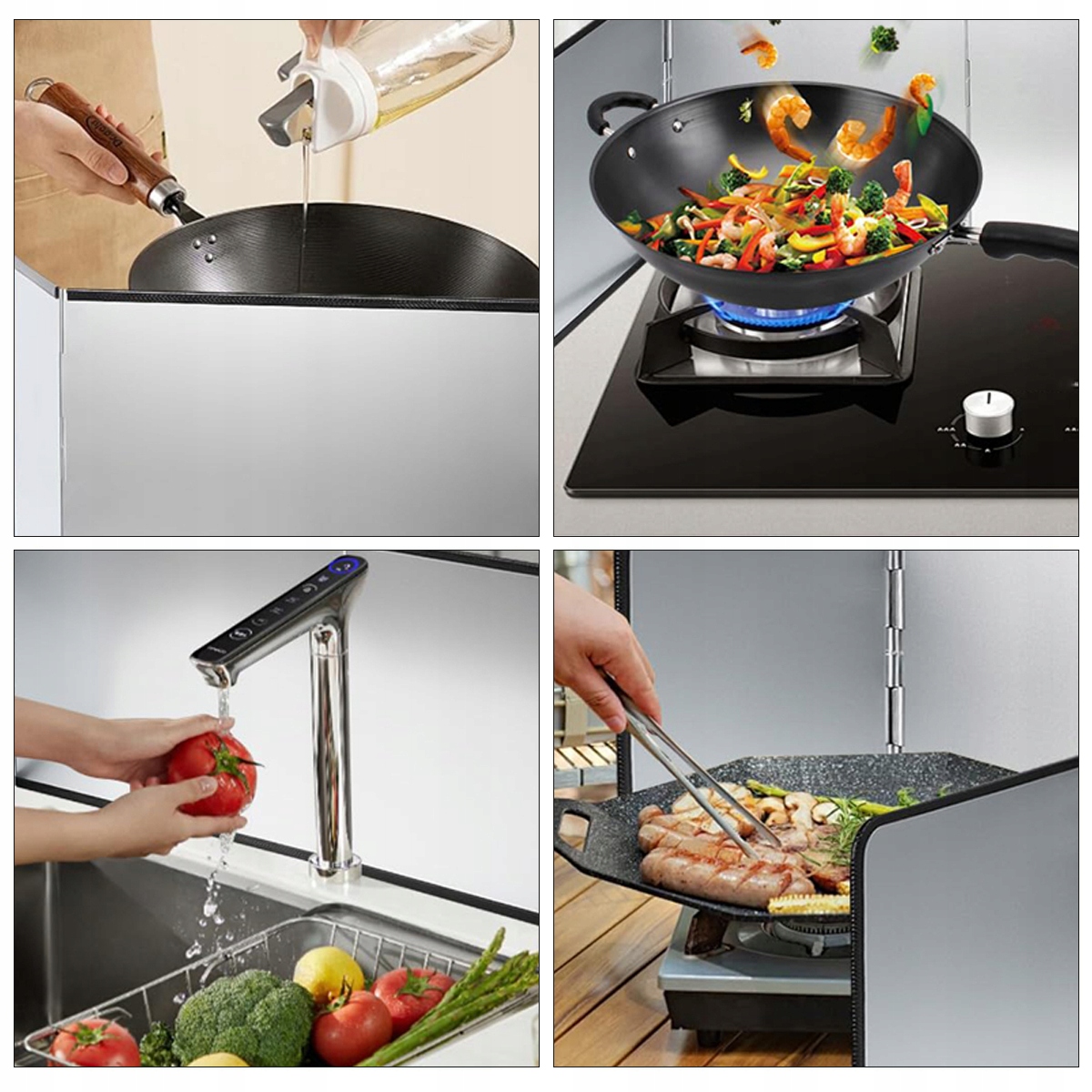 🥧【 Матеріал високої якості】: Матеріал, виготовлений з оцинкованого листа, міцного та міцного, витримує високі температури на кухні, запобігає плесканням плям олії, має хороший ефект ізоляції, не легко деформує, має гладку поверхню і легко очистити.