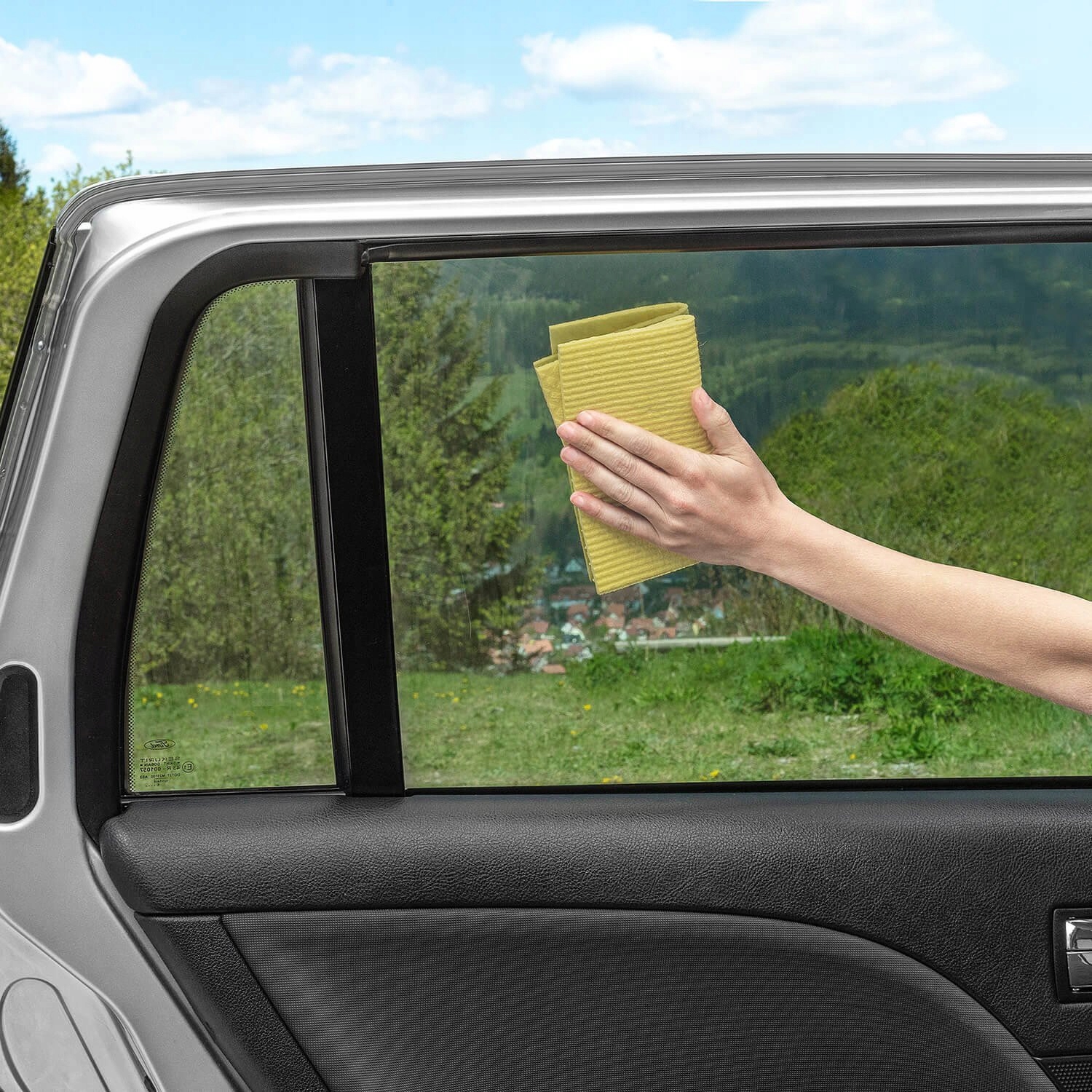 - Завдяки оптимальним розмірам чохол підходить до вікон задніх дверей більшості пасажирів автомобілі.