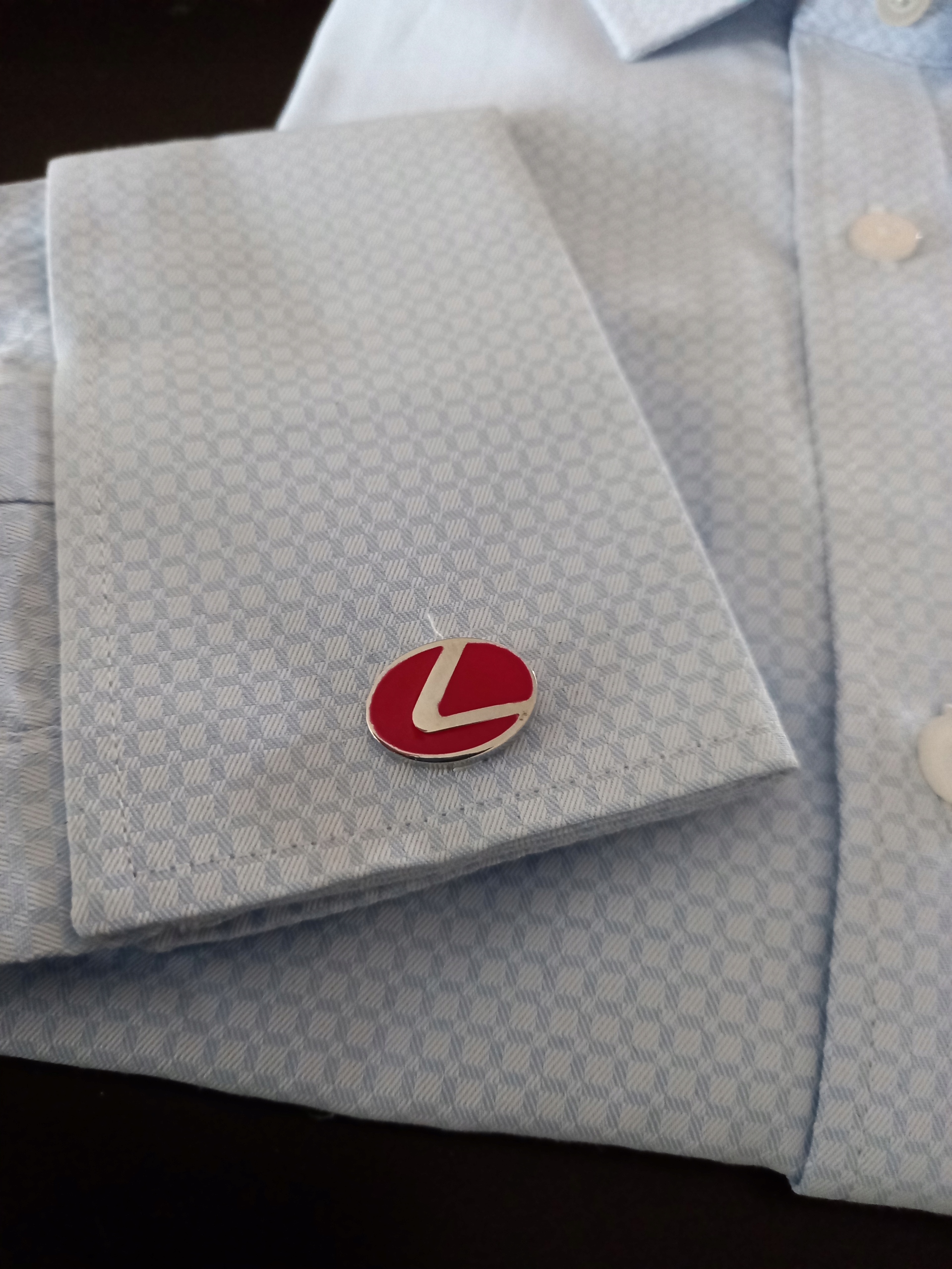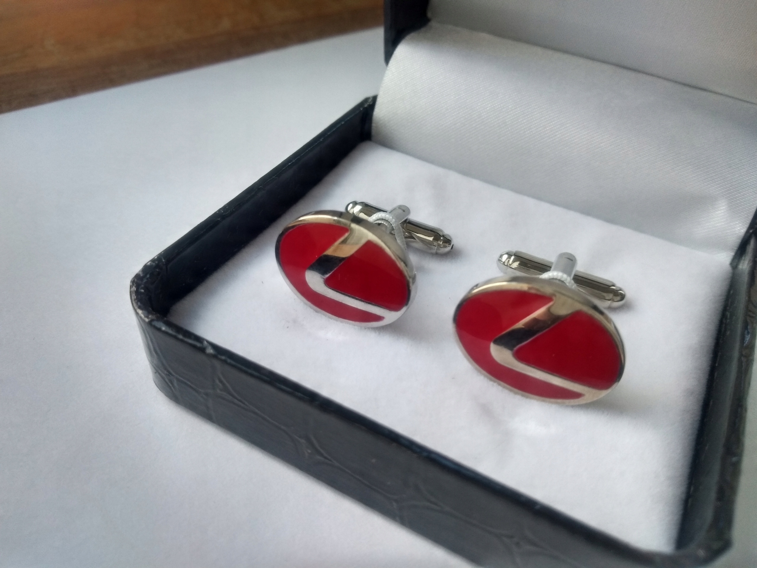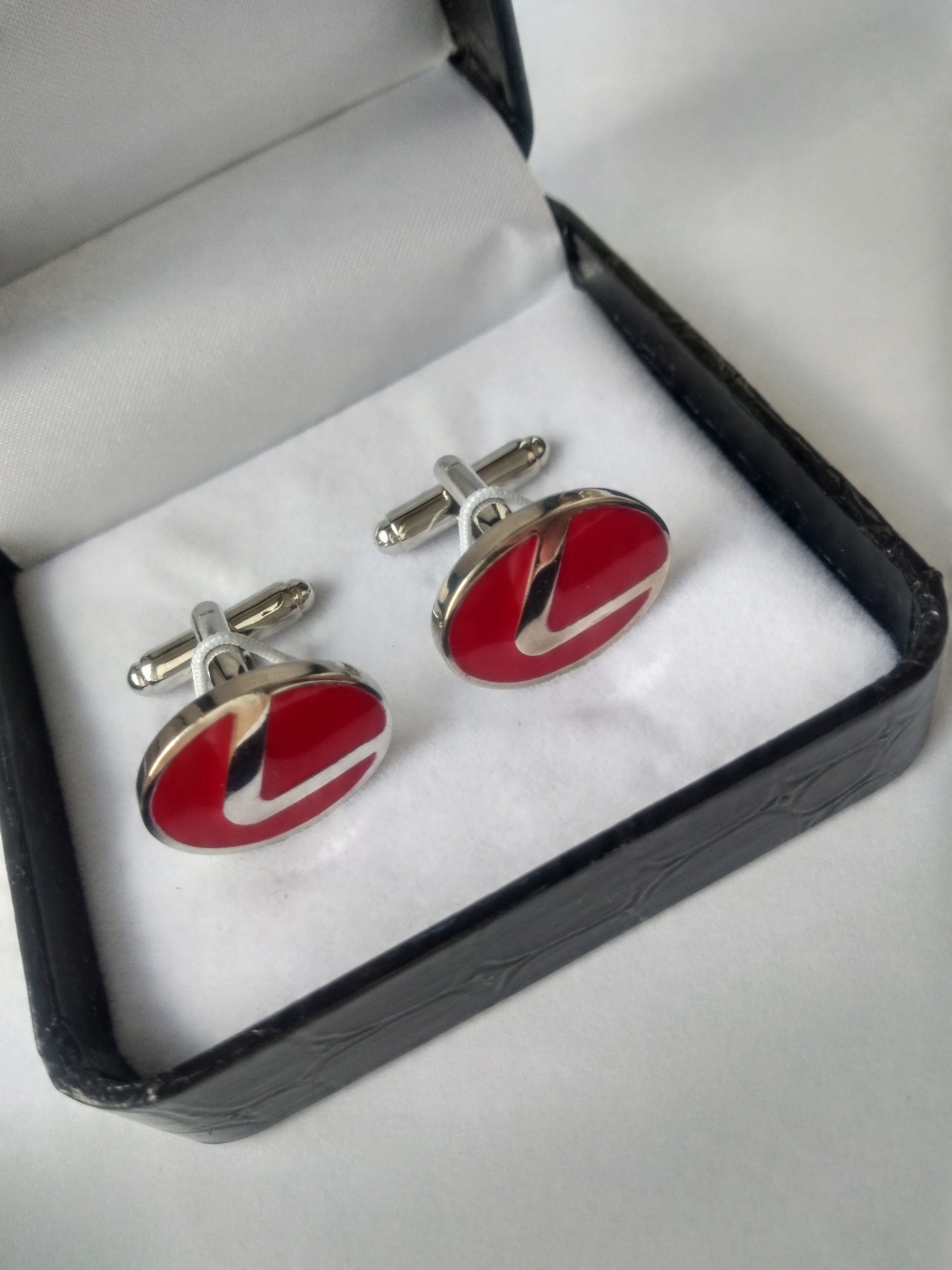Ексклюзивний набір запонок для сорочки з обмеженої серії Exciting "Only for You" Lexus Limited Red Edition (виготовлено лише 100 комплектів запонок цього кольору), упакований у чорну коробку з чорним лакованим малюнком зміїної шкіри.