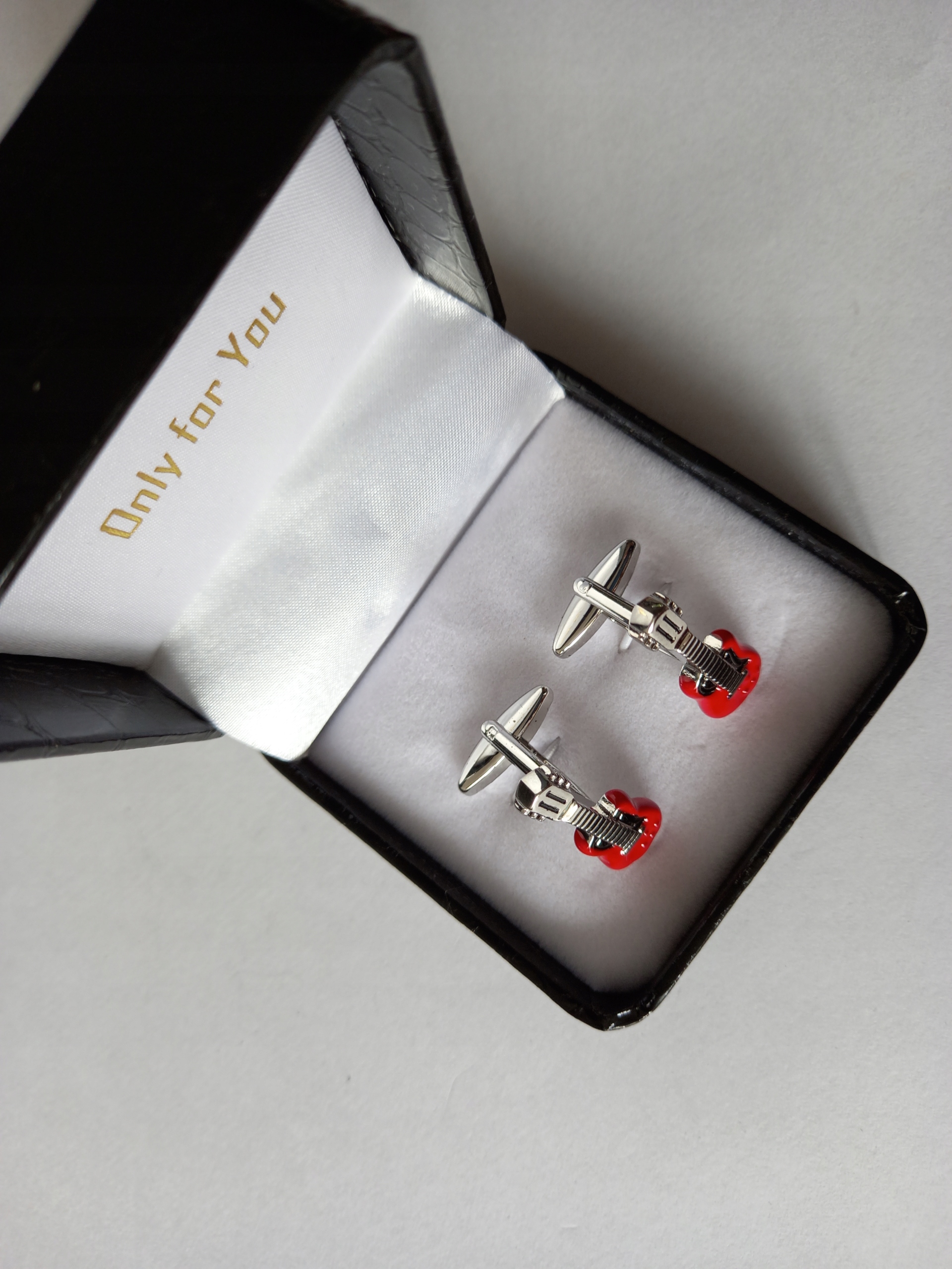 Оригінальні захоплюючі запонки для сорочки у формі вогнегасника для пожежника. Запонки упаковані в ексклюзивну чорну коробку Exciting з малюнком зміїної шкіри зовні та атласної тканини всередині. Дуже цікаві запонки, підійдуть на подарунок.