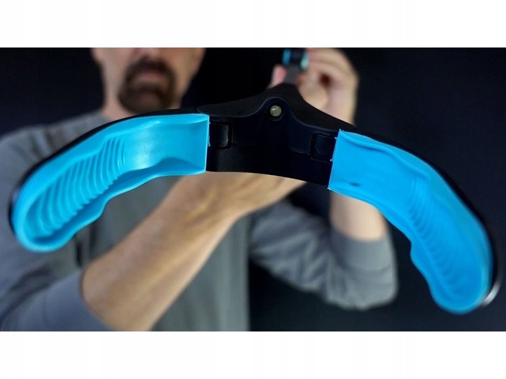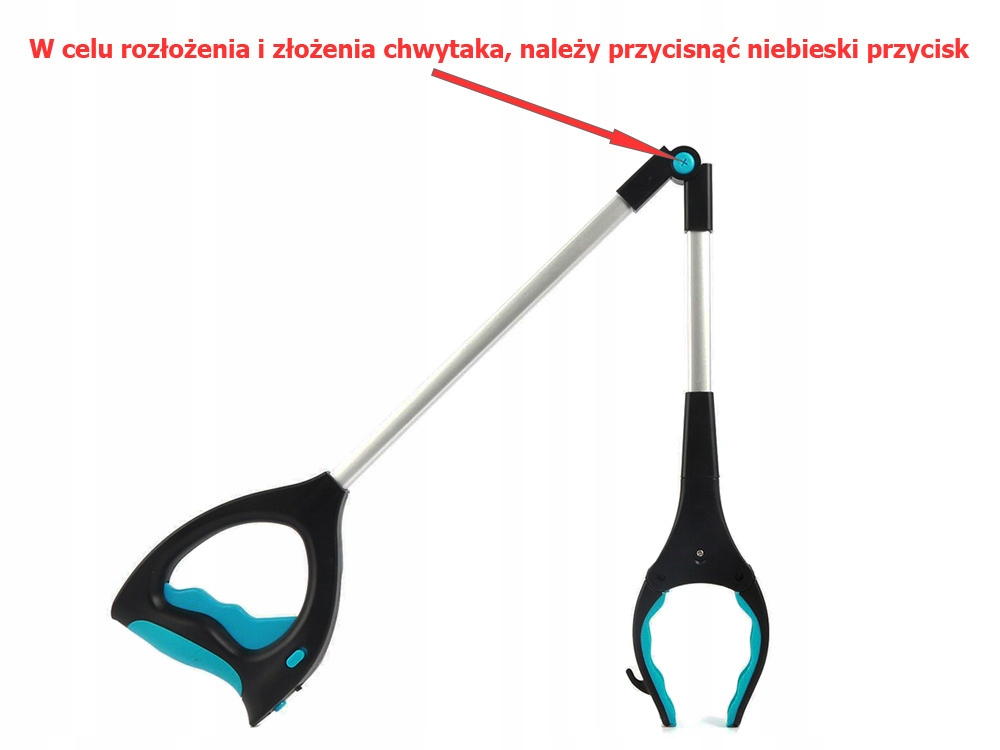 Щоб розгорнути та скласти захоплення, натисніть синю кнопку, розташовану в точці складання пристрою. Розкладання без натискання кнопки може пошкодити пристрій, унеможлививши його фіксацію в розкладеному положенні.