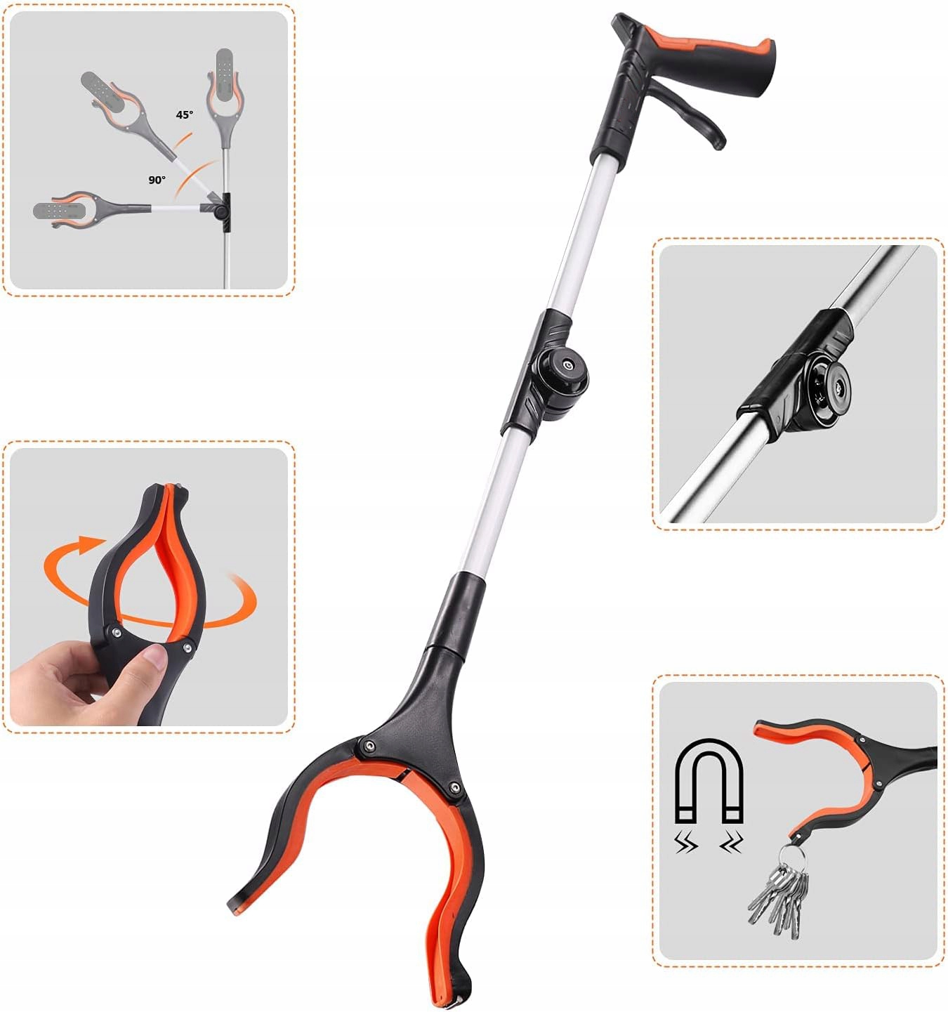 【Легко носити】: незважаючи на те, що наш грейфер має довжину 81,5 см, у складеному вигляді він має лише 45 см, тому ви можете покласти його в рюкзак або валізу; Отвір на кінці затискача дозволяє повісити його на гачок або зберігати.