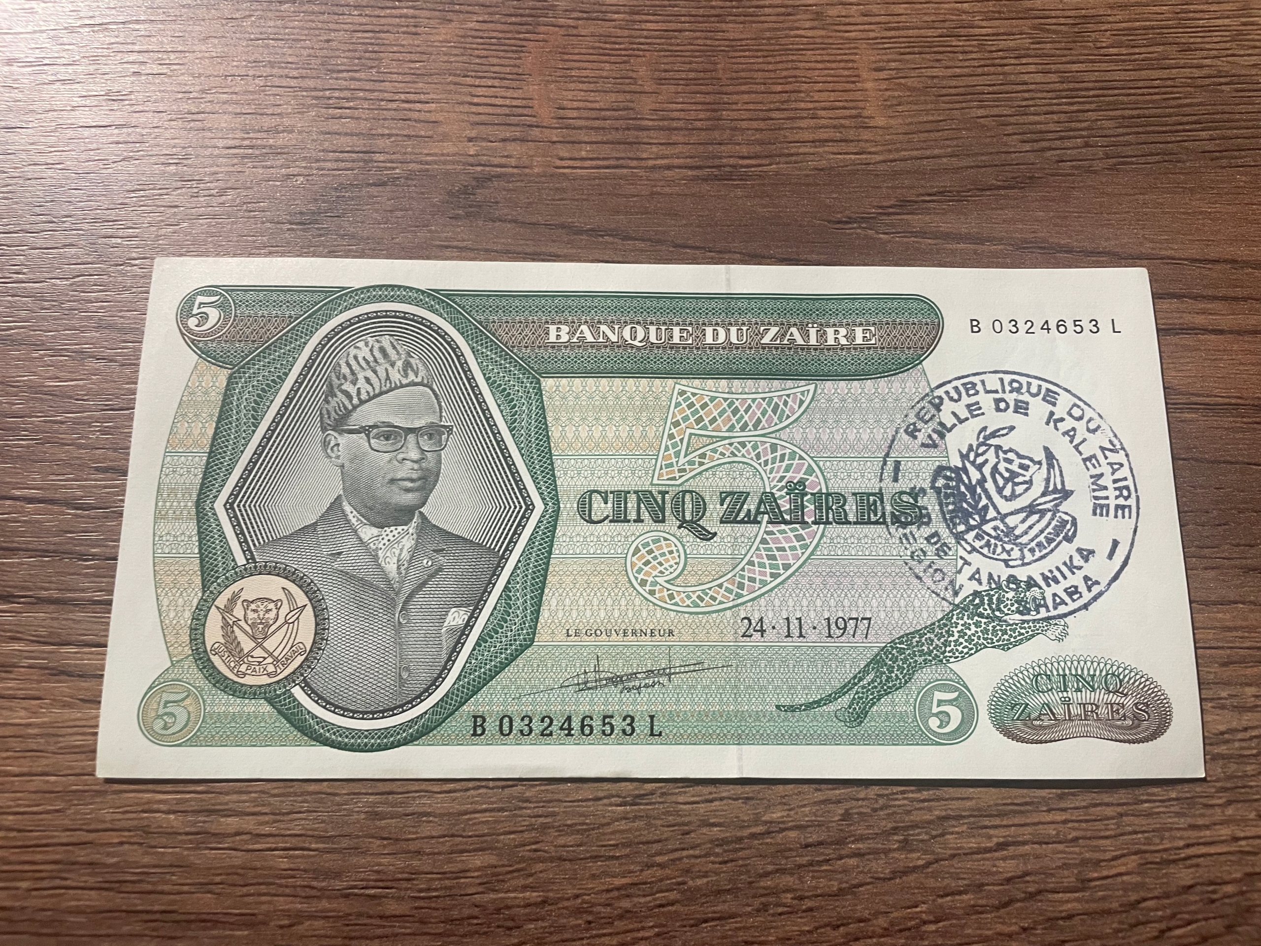 Заїр - 5 заїрів - 1977 - чорна марка - рідкість - UNC