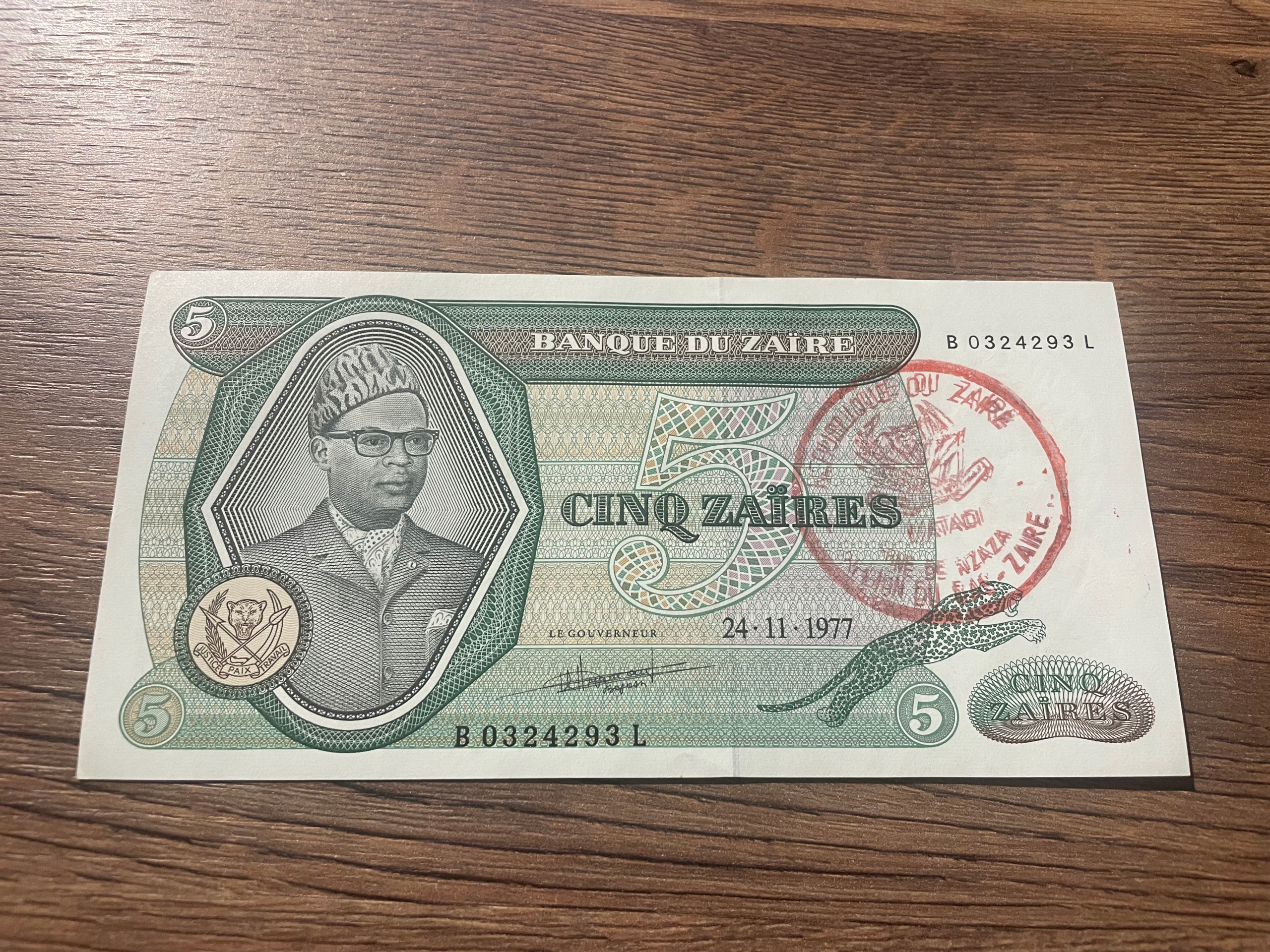 Заїр - 5 заїрів - 1977 - червона марка - дуже рідко - UNC
