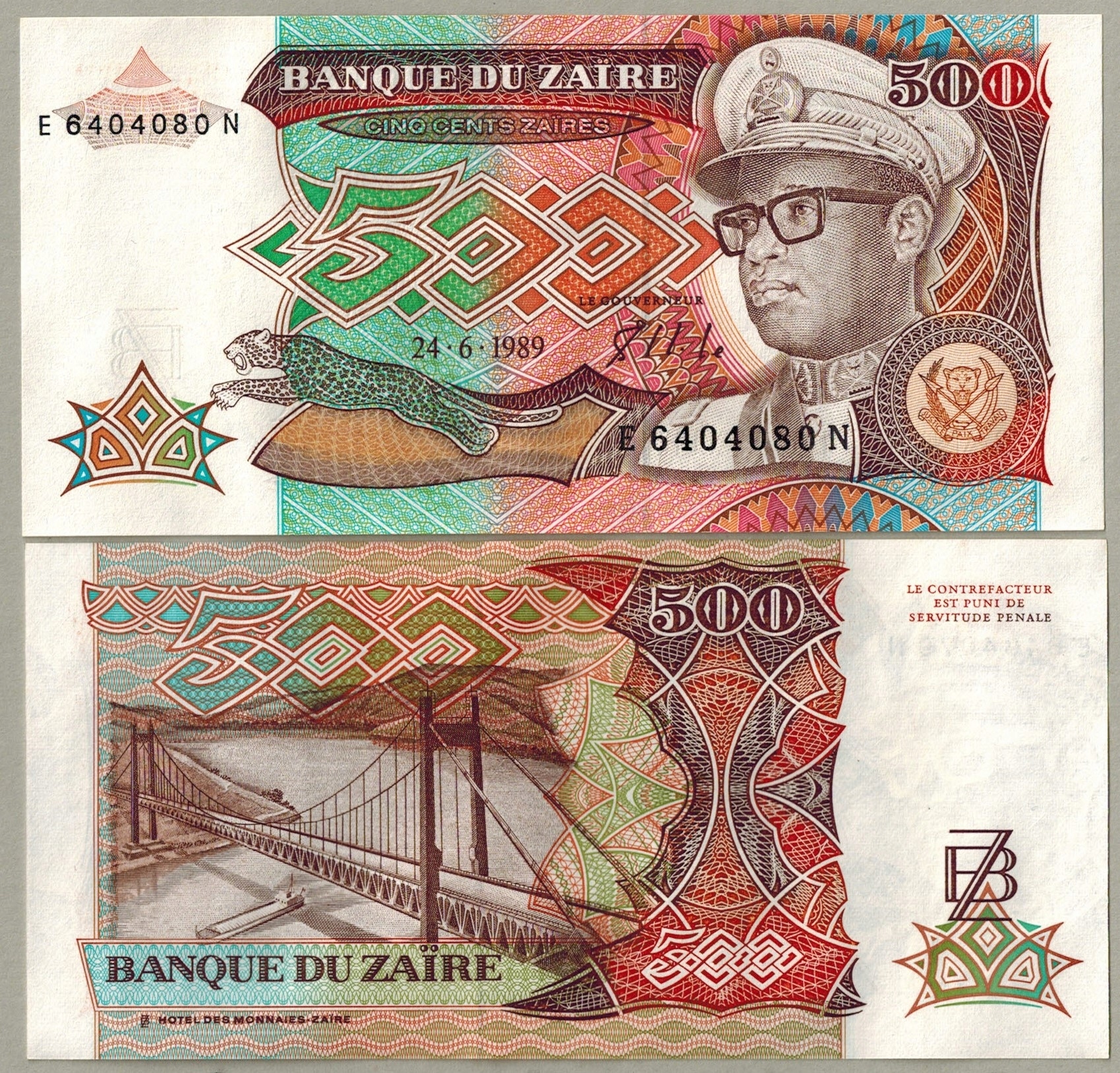 Zair 500 Zaires 1989 P-34 UNC