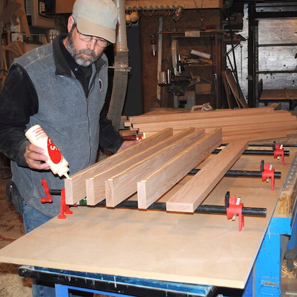 Великі ніжки, які забезпечують більшу стабільність, і відстань між ручкою та верстаком , завдяки чому дерев'яні вироби можна точно закріпити при обклеюванні.