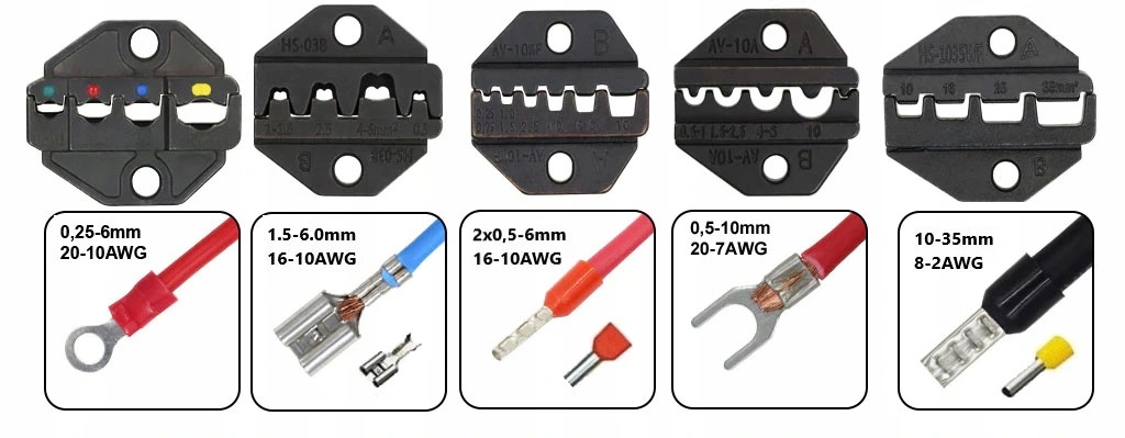 - для кільцевих кабельних наконечників (0,25-1, 1-1,5, 2,5, 4-6 мм)