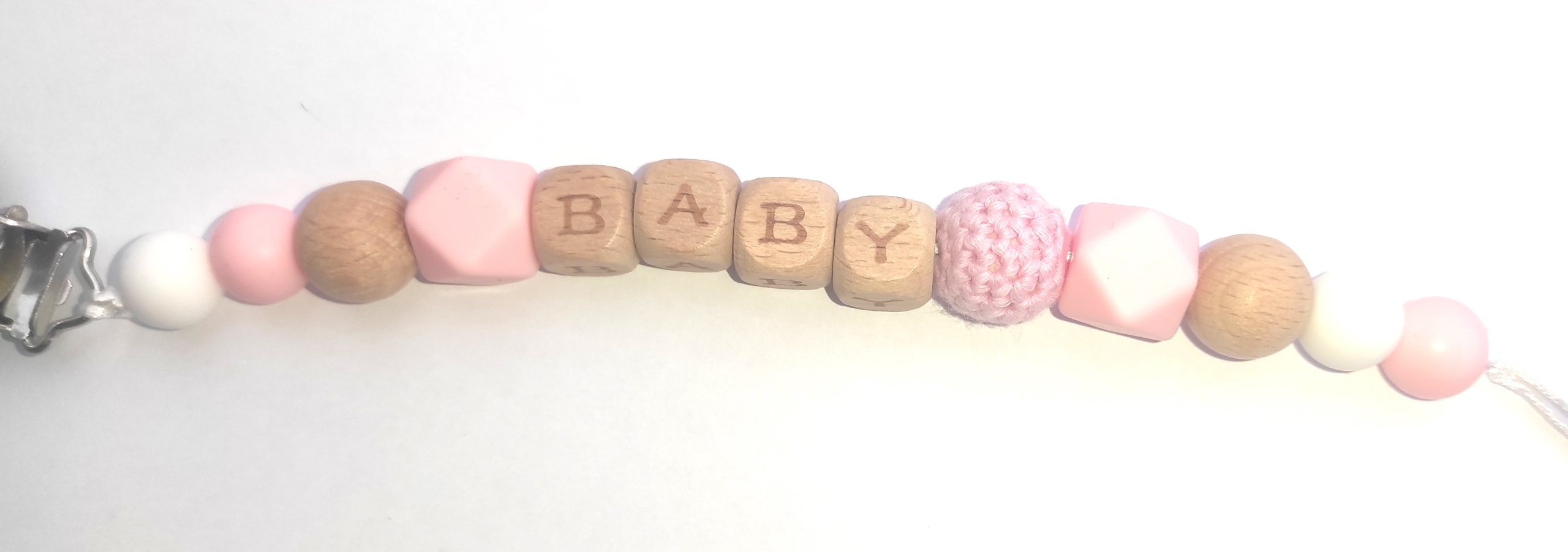 У нас є для вас пропозиція - легка дерев'яно-силіконова підвіска-пустушка з Гравіроване ім’я дитини, доступний у: багатьох кольорах ланцюжків.