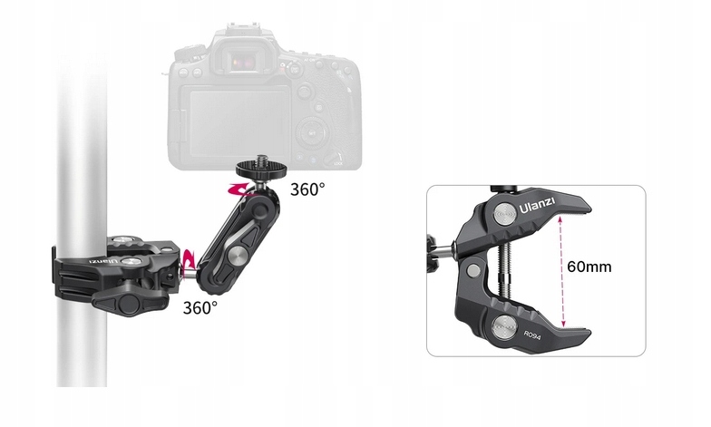 - Ліщата дозволяють встановлювати фотоапарати, фотоапарати, фото аксесуари на всілякі профілі, балки , труби діаметром від 14 до 60 мм