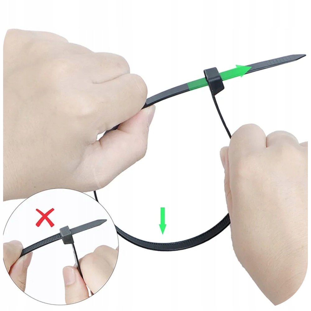 Використання кабельних стяжок — це дитяча гра. Просто пропустіть ремінь через голову, розташовану на кінці стрічки. У голові єсобачка, яка зупиняється на зубцях ременя. Засувка дозволяє рухати його тільки в одному напрямку - послабити хват неможливо.