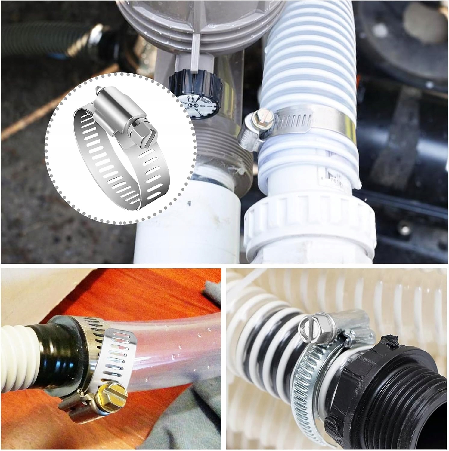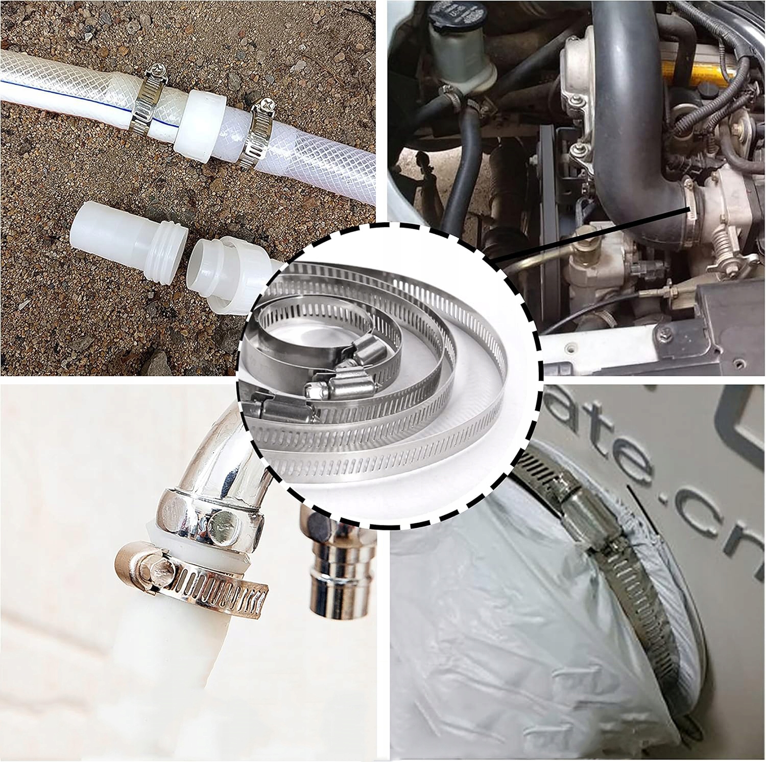 ✅✅【БІЛЬШІ ЗАСТОСУВАННЯ】 Наш регульований хомут із нержавіючої сталі відкриває широкі можливості застосування. Ідеально підходить для автомобільної, промислової, морської техніки, вивісок, домашнього господарства тощо. Легко з’єднує труби та шланги різних розмірів і відповідає потребам у різноманітних сферах застосування.