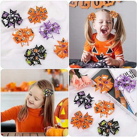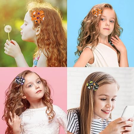 - Вишукана майстерність Мила заколка для волосся на Хелловін зроблена з товстої стрічки, колір банта чудовий, метал Міцний і довговічний затиск із алігатором, його нелегко зламати чи деформувати, він витримує тривале використання, тримає ваше волосся комфортно, нелегко впасти, підходить для будь-якого одягу. Ви також можете використовувати їх для одягу, пов’язок, сумок тощо.