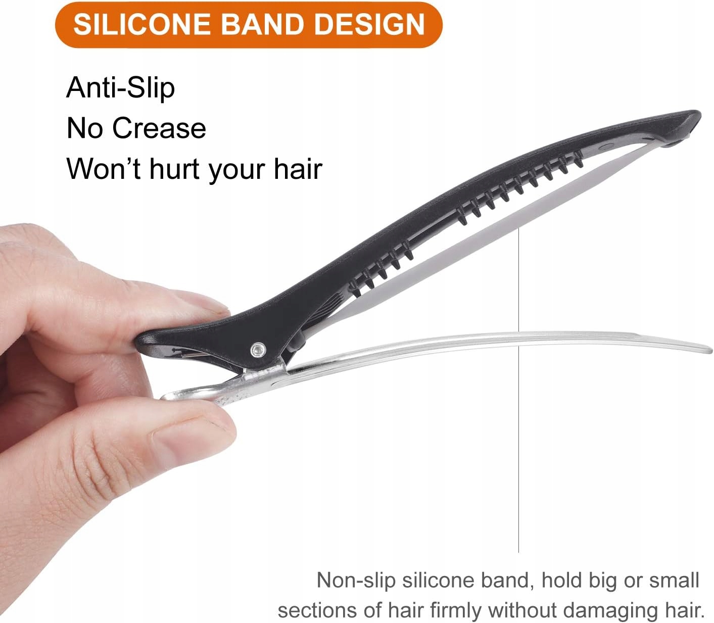 - ✔ 【Захист від ковзання】 - Завдяки силіконовій смузі наші затискачі для волосся не ковзають і міцно тримають великі чи маленькі ділянки волосся, не смикаючи. або пошкоджує волосся, незалежно від того, вологе воно чи сухе, що значно полегшує укладку.