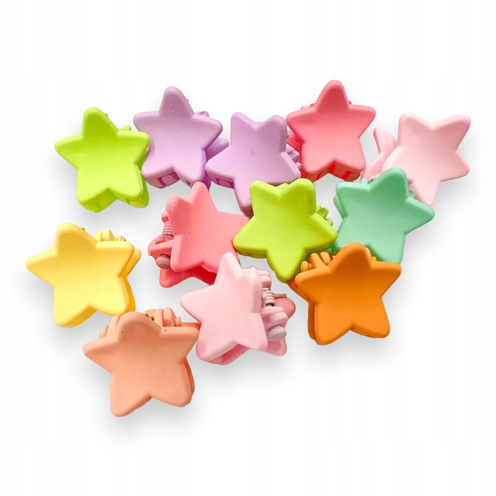 ЗАЖИМКИ ВОЛОСЯ ЖАБКИ, КОЛЬОРОВІ ПАСТЕЛЕВІ МАТОВІ ЗІРКИ, 12 ШТ.