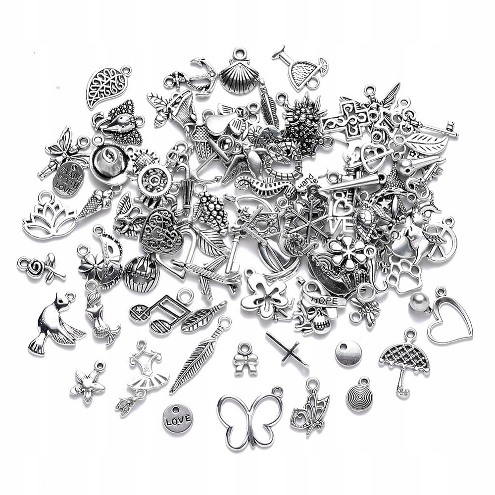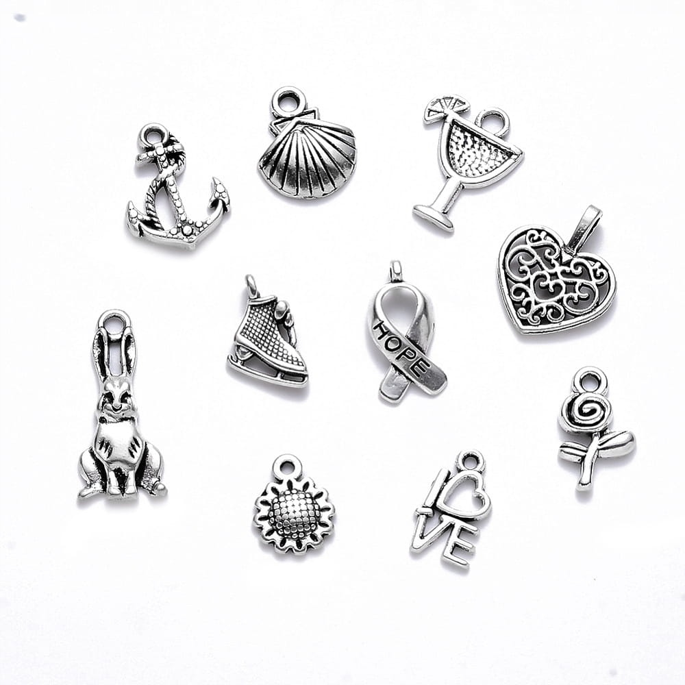 Красиві металеві підвіски для браслетів, прикрас. Суміш візерунків форми. 100 унікальних чарівних підвісок у стародавньому сріблі.