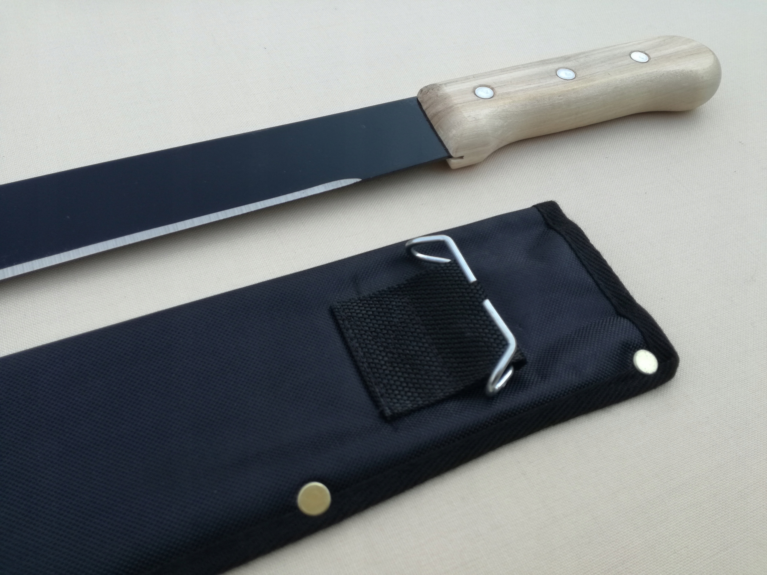 - В комплекті з мачете є нейлоновий чохол з ручкою для кріплення до пояса