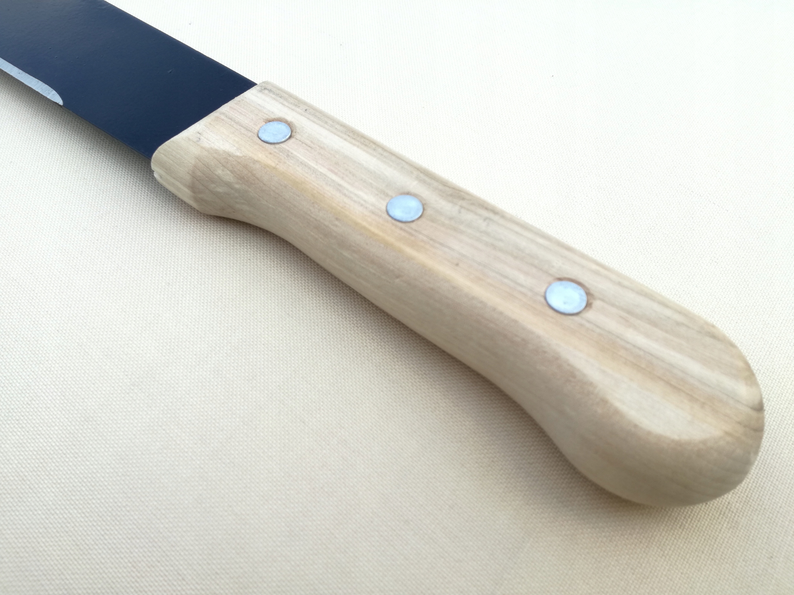 - дерев’яна ручка правильної форми з’єднана з ріжучою частиною трьома заклепки