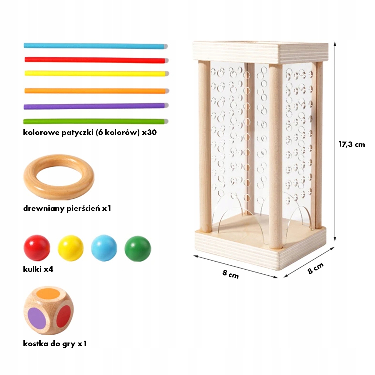 барвиста, дерев’яна гра 2in1 , яка поєднує в собі веселощі з навчанням! Піраміда палиці - це набір завдяки тому, що діти практикують невеликі рухові навички, концентрацію, сприйнятливість та розпізнавання кольорів. Ідеально підходить для сімейних ігор, для дитячого садка та в подарунок.