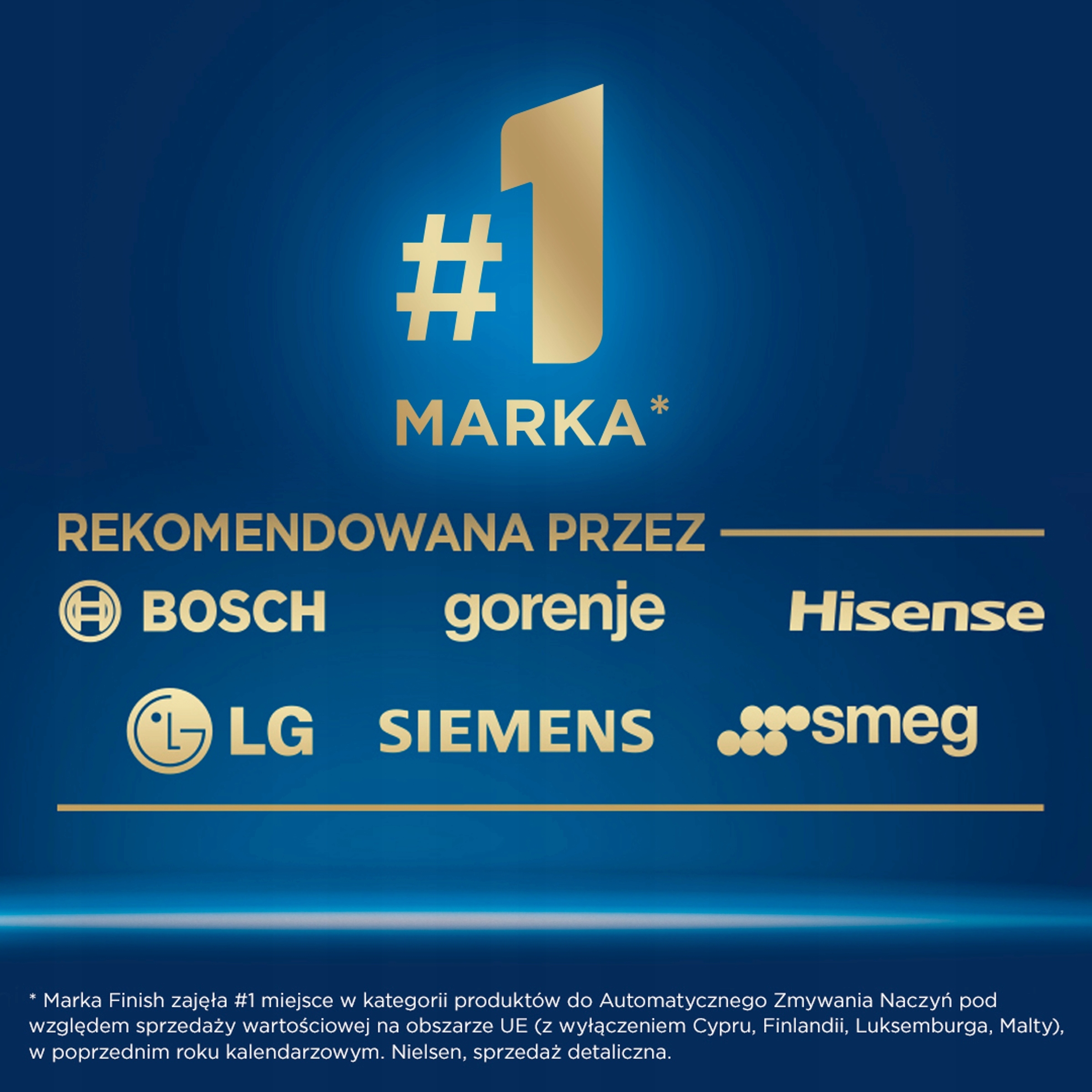 Finish - це інновації, які встановлюють алмазний стандарт у категорії посудомийних машин для посудомийної машини у винаході посудомийної машини. Finish - це бренд № 1 *****, рекомендується виробниками посудомийної машини, такими як: Beko, Bosch, Gaggenau, Gorejne, Grundig, Neff, Siemens, Smeg.