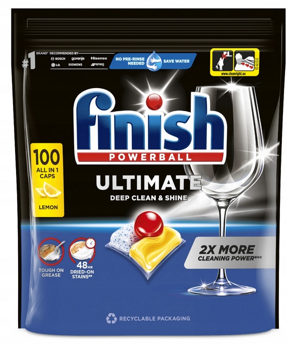Закінчити Ultimate All IN 1 забезпечує глибоке очищення та діамантове сяйво, від першого використання, кожного разу. Розширена формула технології Activelift ефективно видаляє всі види харчових залишків, навіть висушені на 24 години - без початкового промивання. Виняткова ефективність капсули, хімічна маса якої знизилася на 15% порівняно з табличкою потужності обробки.