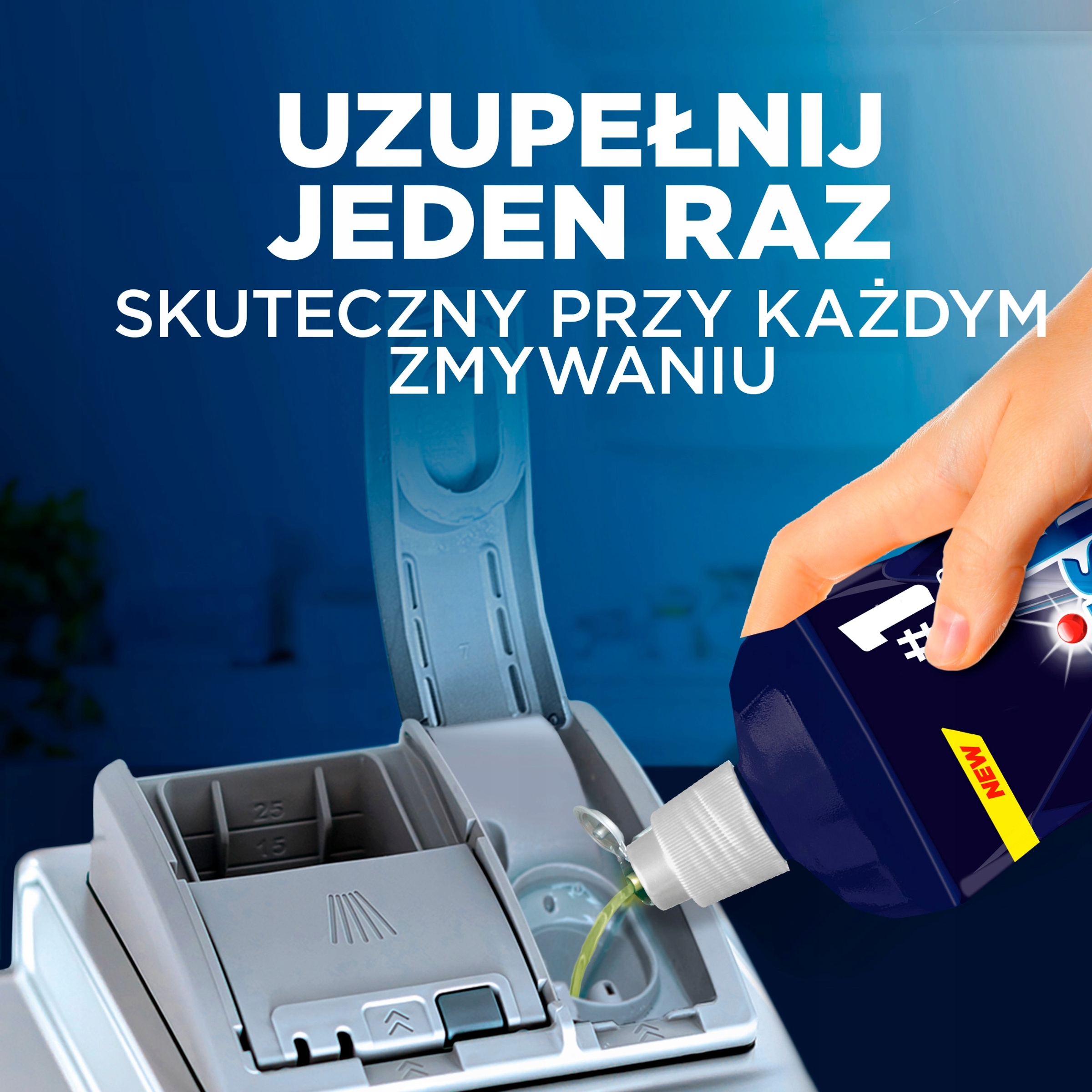 Налийте спеціальний дозатор. Заповніть дозатор щонайменше один раз на місяць або коли індикатор у дозаторі або контрольній лампі повідомить про порожній дозатор.