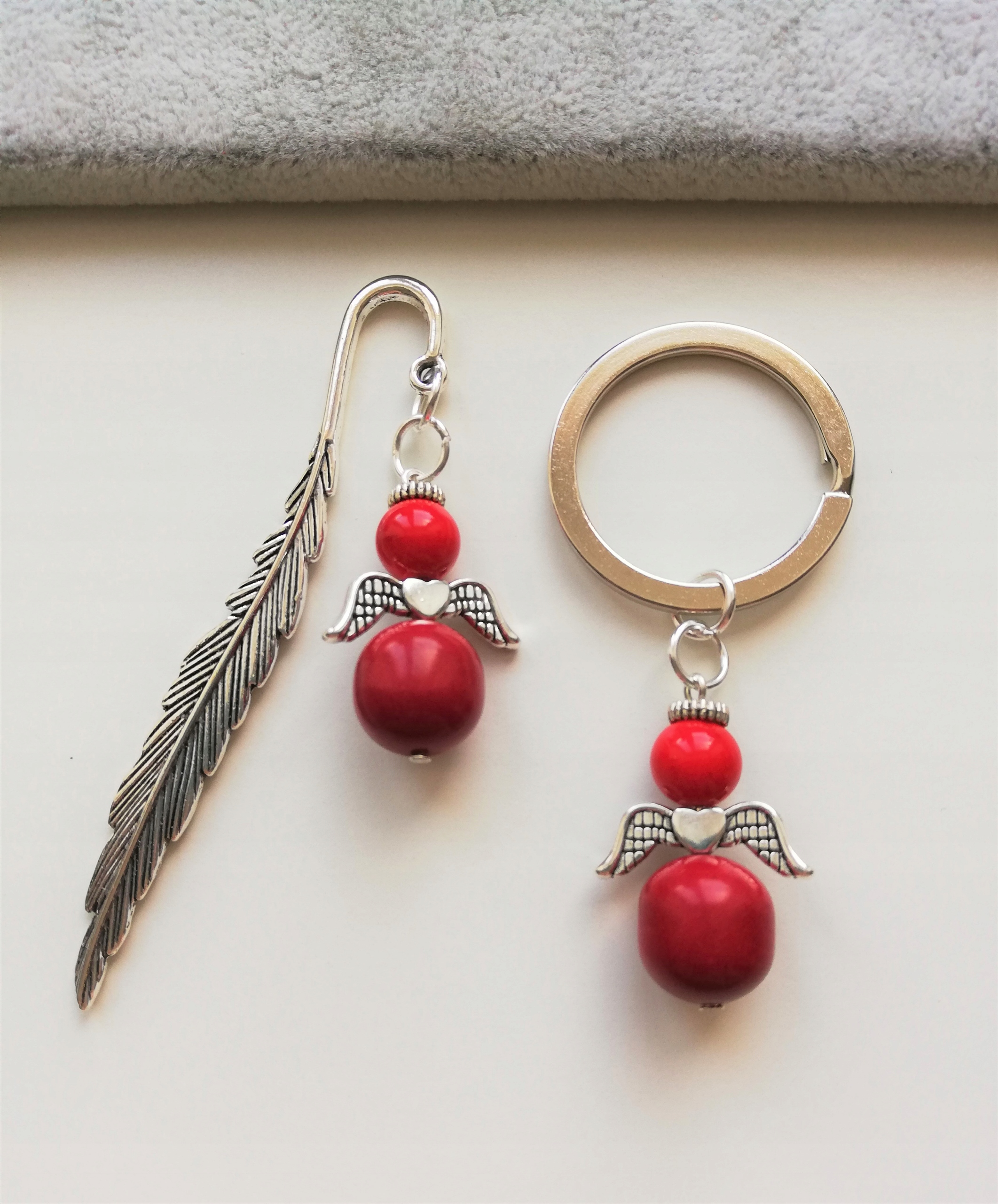 Унікальний та оригінальний набір закладок та брелока з підвіскою у формі АНГЕЛА з коралів та нефриту.