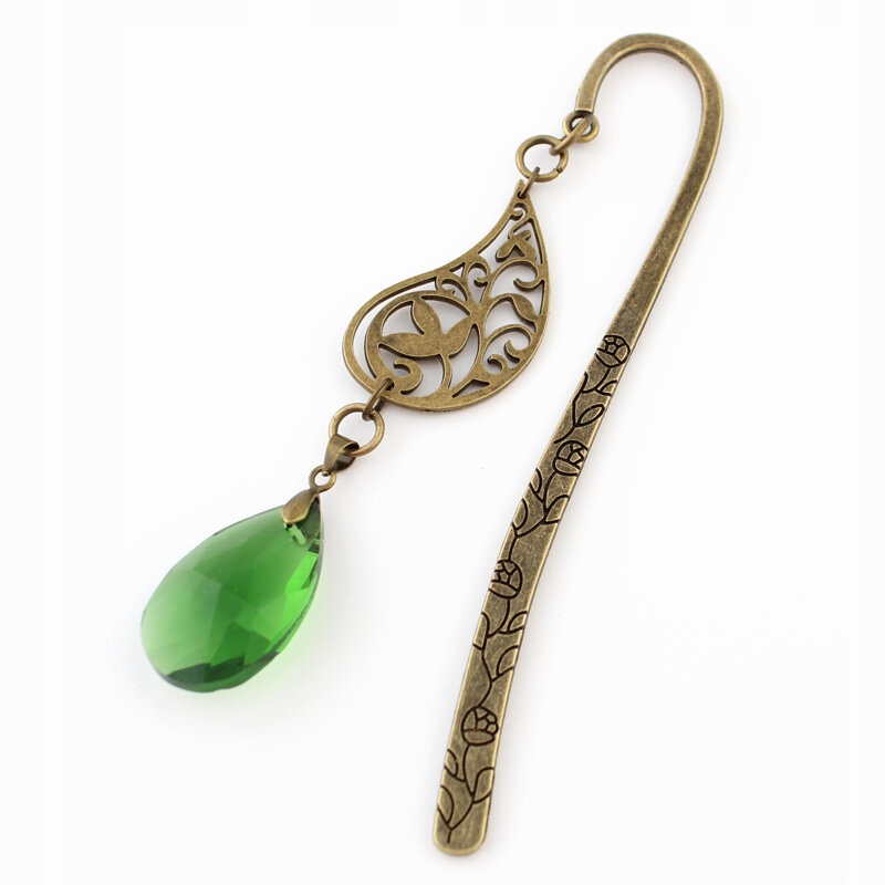 Закладка виготовлена з ажурної підвіски та скляного кристала у формі краплі.