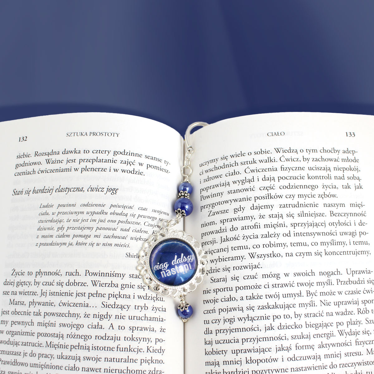 Закладка з елементів сріблястого кольору, декорована написом "продовження", закрита під опуклим склом. Стильний аксесуар для всіх, хто любить книги та загадкові історії. Ідеально підходить як подарунок або як унікальний подарунок без приводу.