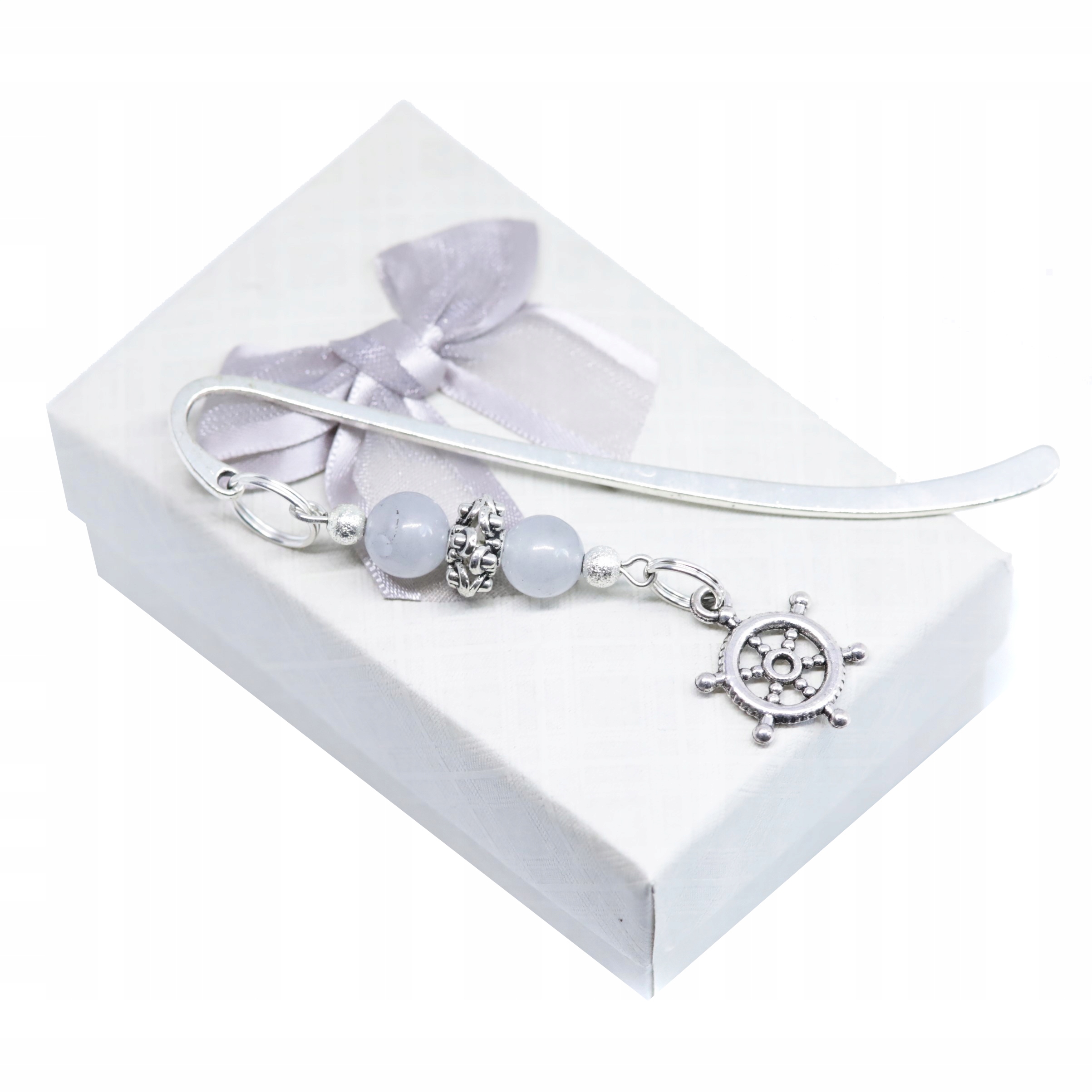 Елегантна закладка з підвіскою у формі штурвала та кульками з нефриту.