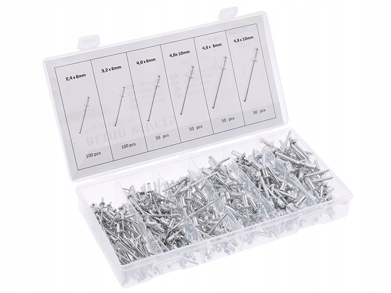 ЗАКЛЕПКИ АЛЮМІНІЄВІ 400 ШТ. комплект 2.4x6 3.2x6 4.0x6 4.0x10 4.8x6 4.8x10