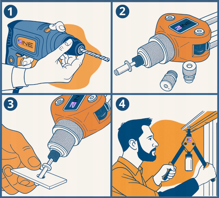 ZINE - найбільший виробник і постачальник високоякісного кріплення. Пропонуємо глухі заклепки: алюмінієві, сталеві, нержавіючі, розсічені та кольорові (палітра RAL). Ми також пропонуємо широкий вибір заклепкових гайок різних розмірів. У нашому асортименті також є ручні та пневматичні заклепочники, які забезпечують швидкий і точний монтаж. Ми постачаємо оптовим компаніям і індивідуальним клієнтам, гарантуючи надійність, пунктуальність і професійне обслуговування.