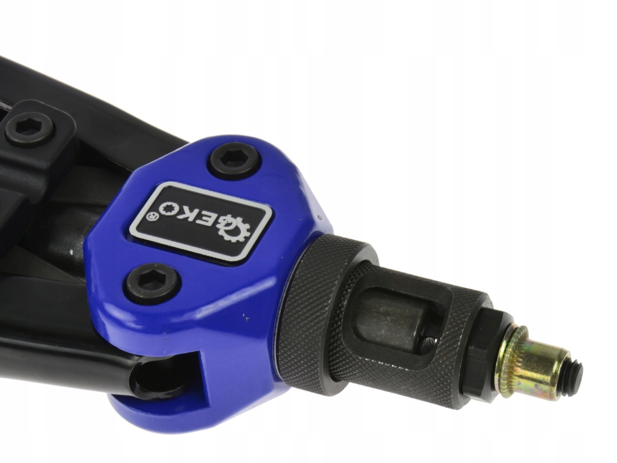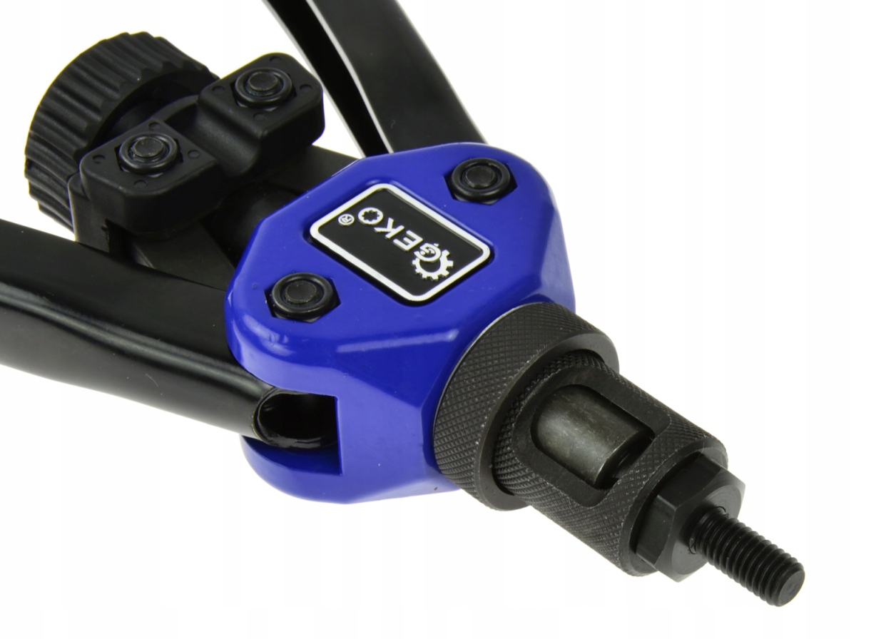 Важільний заклепувальник призначений для виконання різних з'єднань типи матеріалів з використанням глухих заклепкових гайок. Заклепочник виготовлений з матеріалів найвищої якості. Оснащений набором із п’яти головок розмірів: M3, M4, M5, M6, M8, M10. Використання заклепкових гайок дозволяє загвинчування додаткових елементів гвинтом розміром із заклепкову гайку.