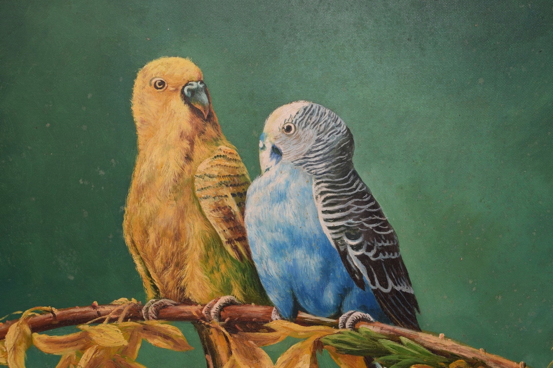 Закохані папуги, закохані птахи - картина маслом - золота рамка 71x61 см