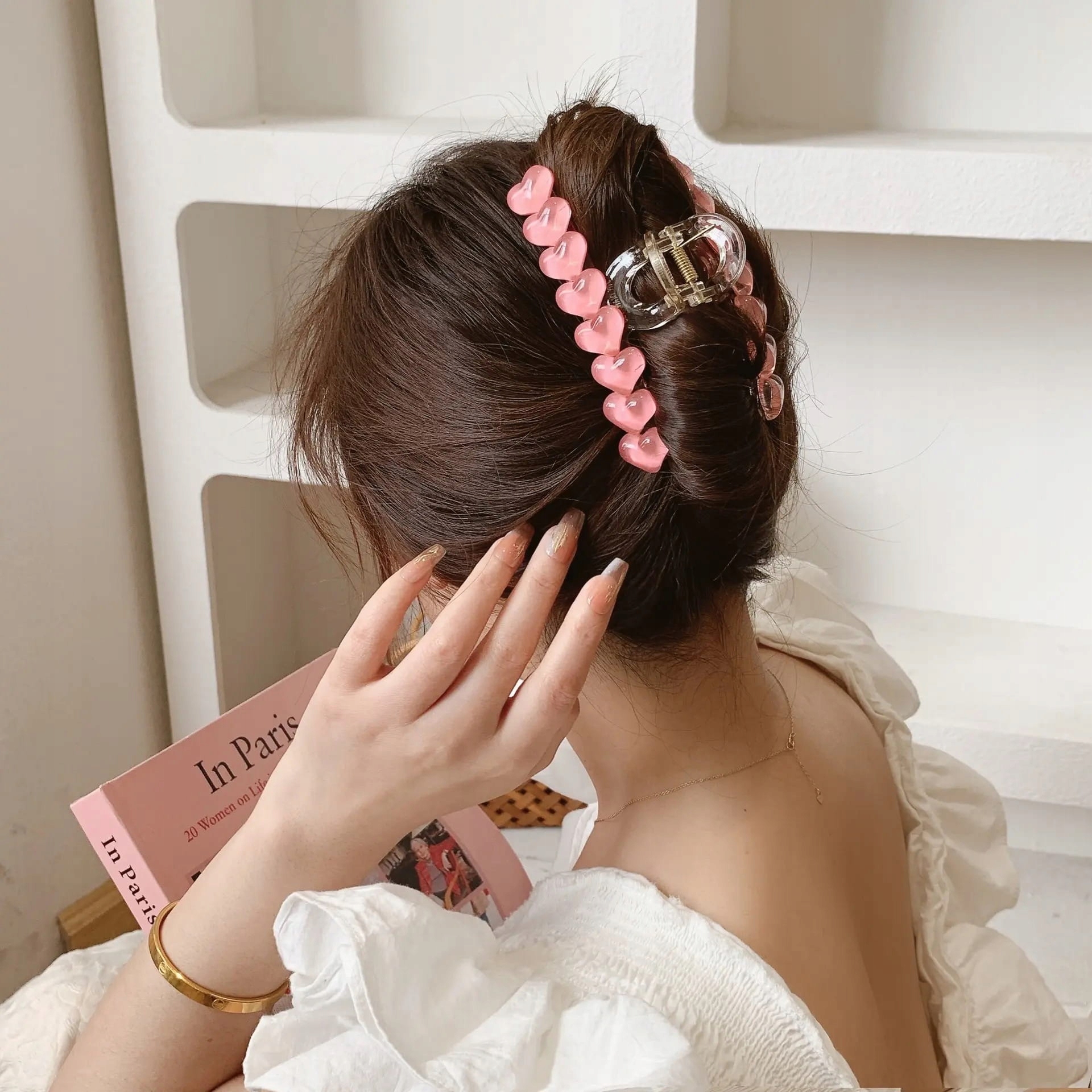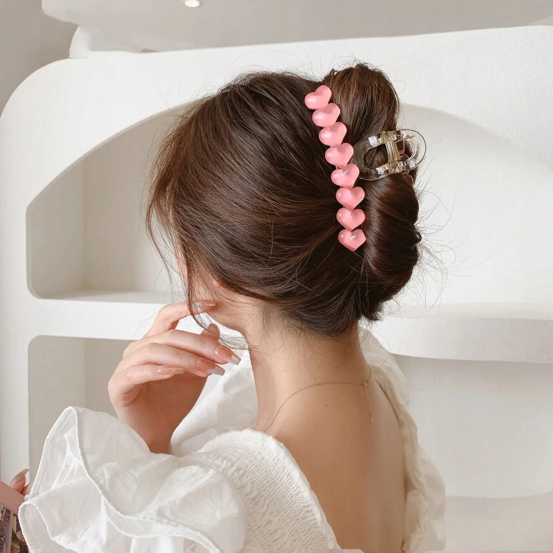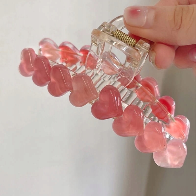 Заколка для волосся довга пряжка рожеві сердечка