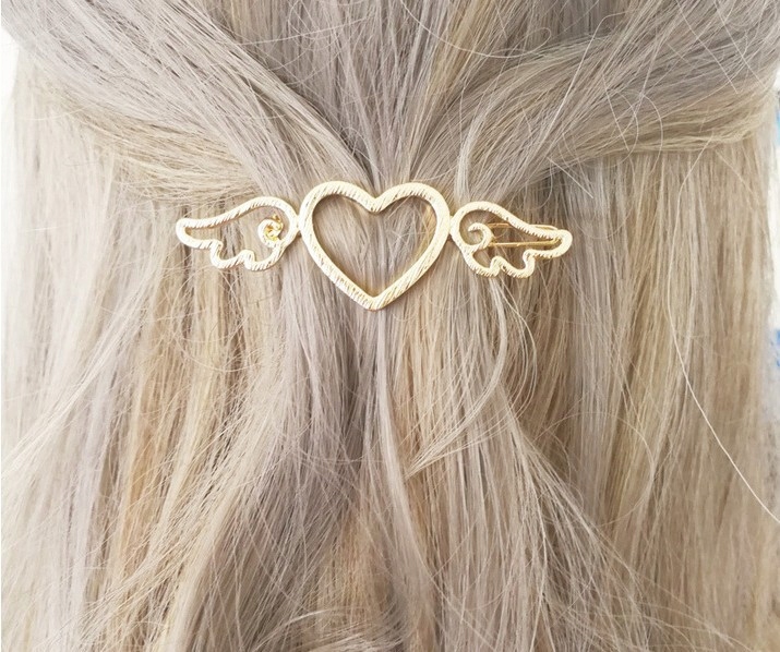 Елегантна металева шпилька, що нагадує серце з крилами, - вишуканий і чарівний аксесуар для волосся.
