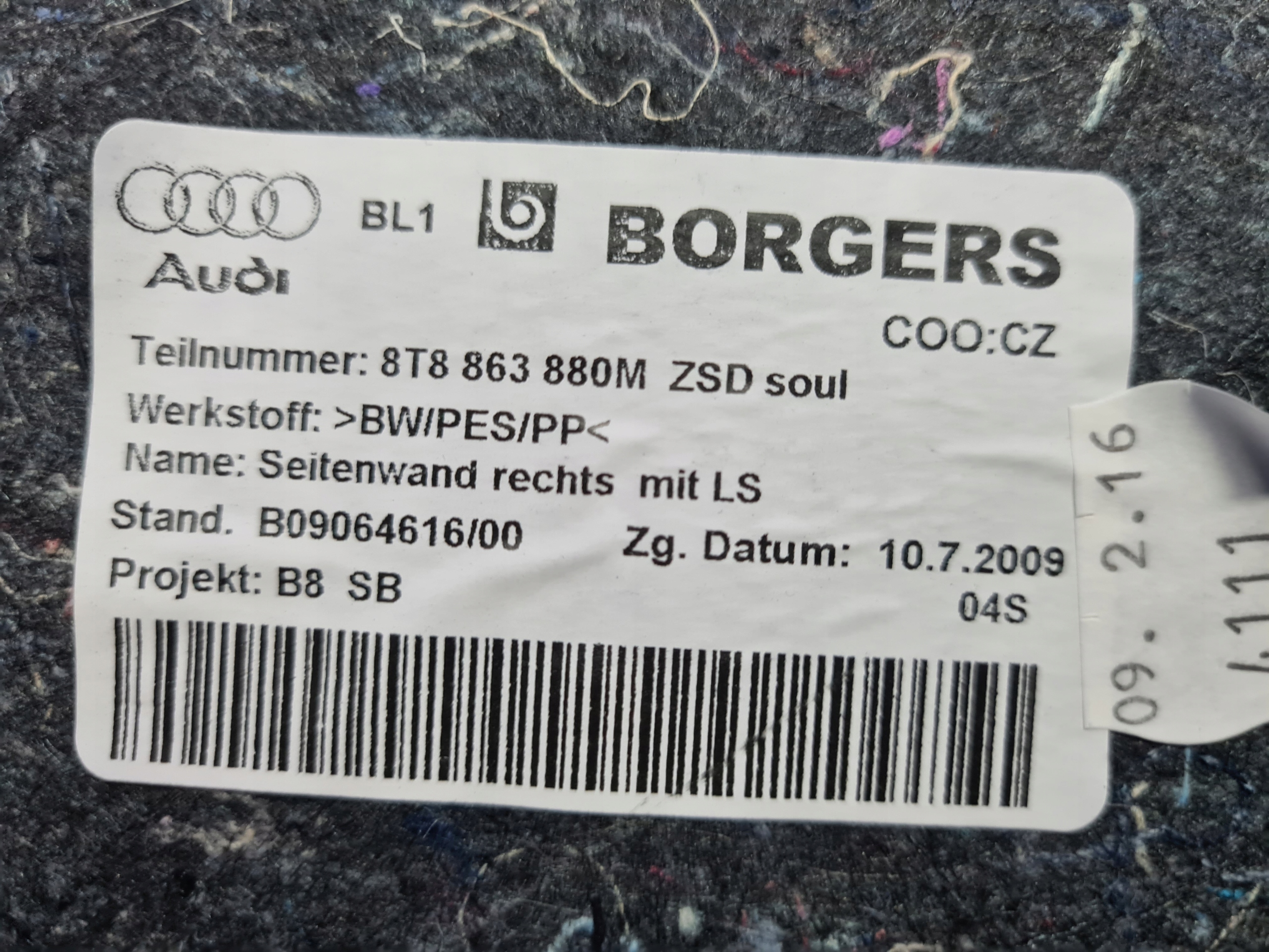 Законова оббивка закону Audi A5 8t Sportback Правий бекон Задній 8T8863880M